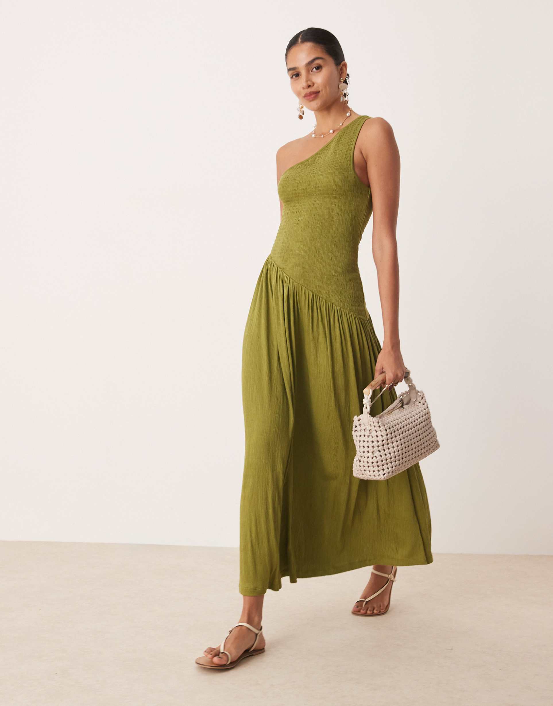 Asymmetric Bodice Midi Dress