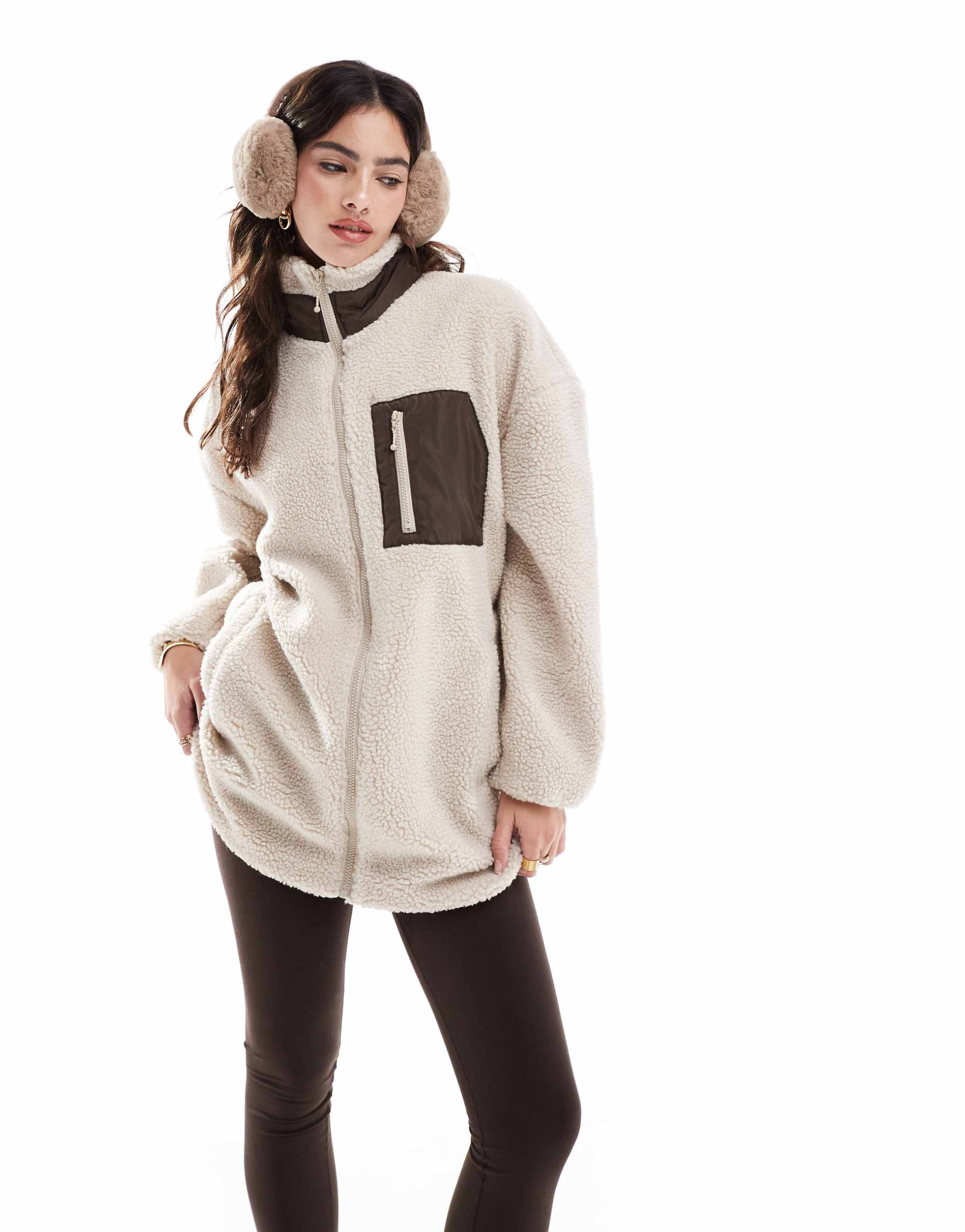 Beige Fleece Jacket With Pockets