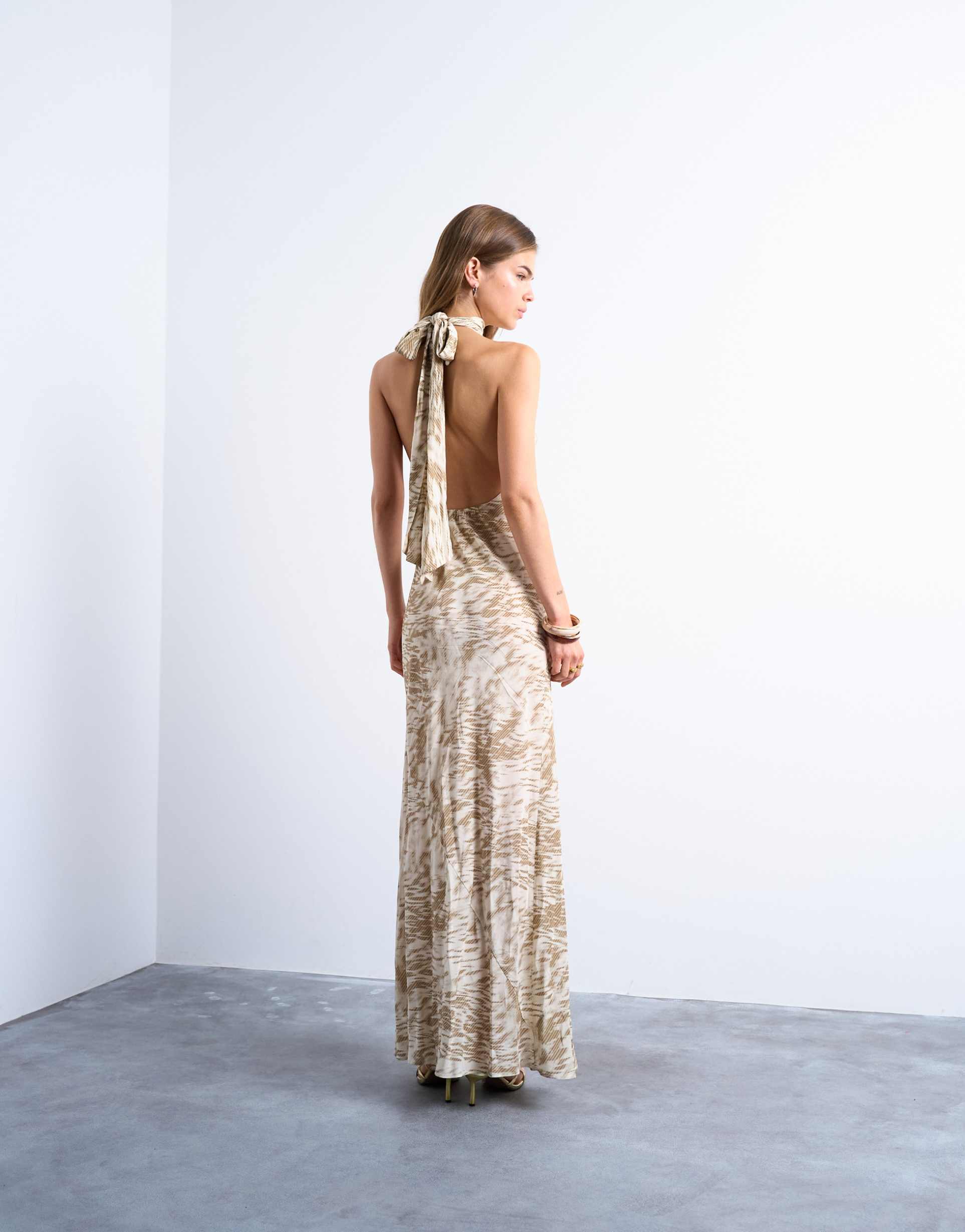 Beige Halter Midi Dress