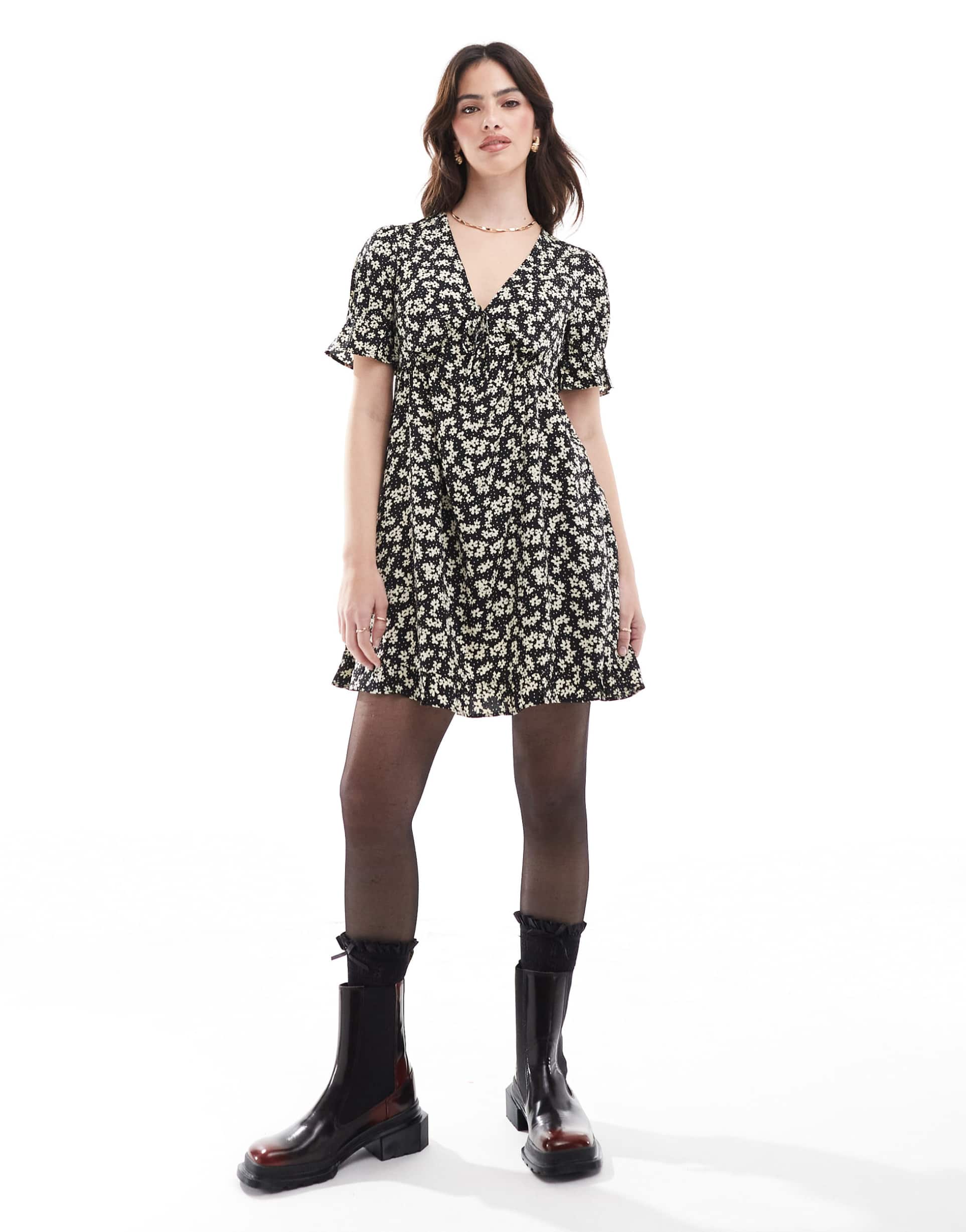 Black And White Floral Mini Dress