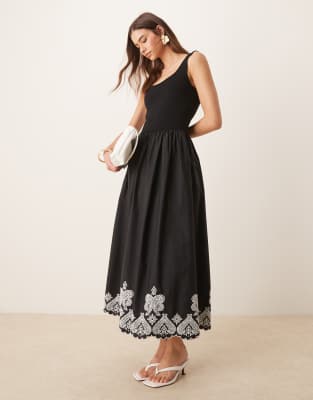 Black Embroidered Midi Dress
