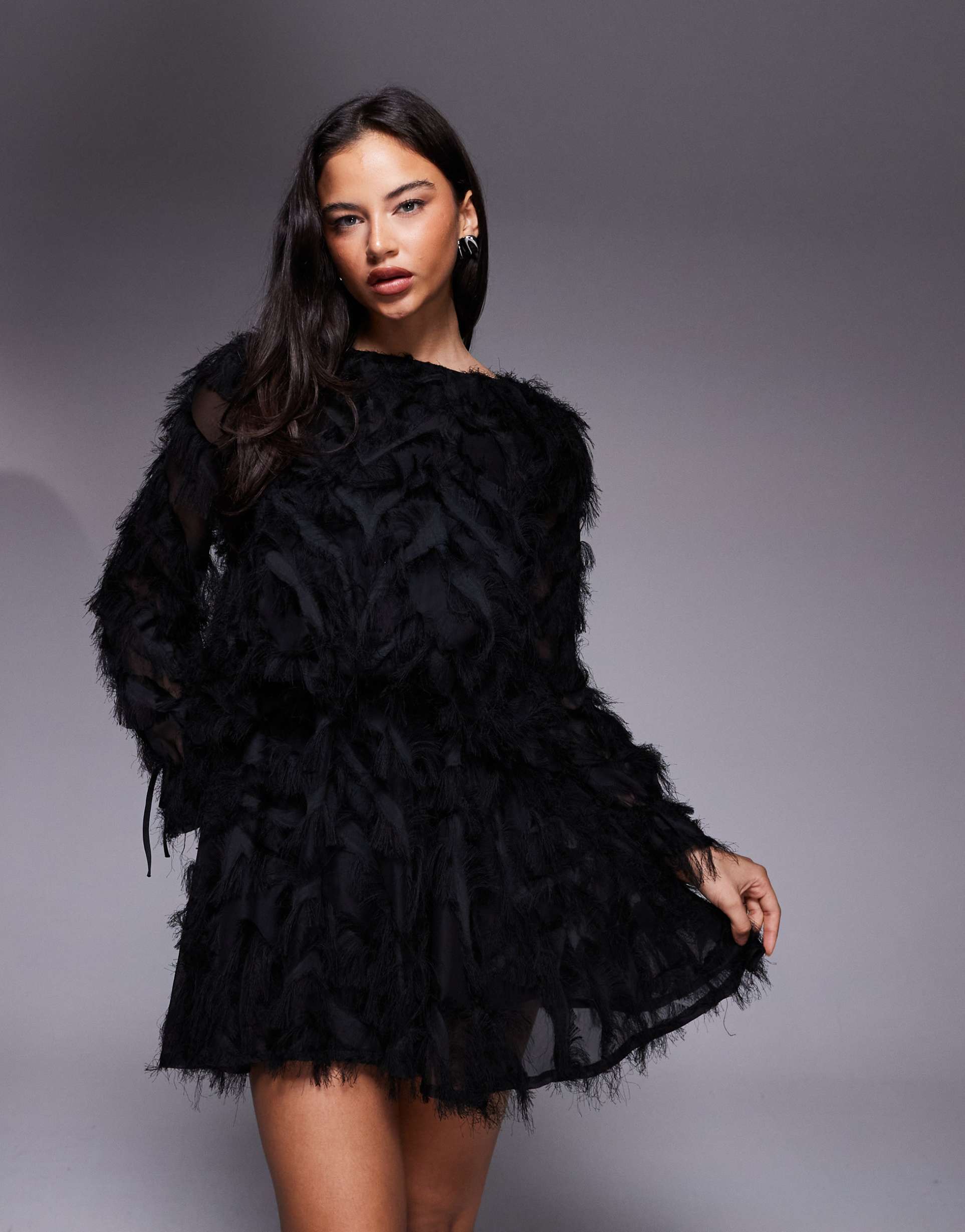 Black Feather Sleeve Dress