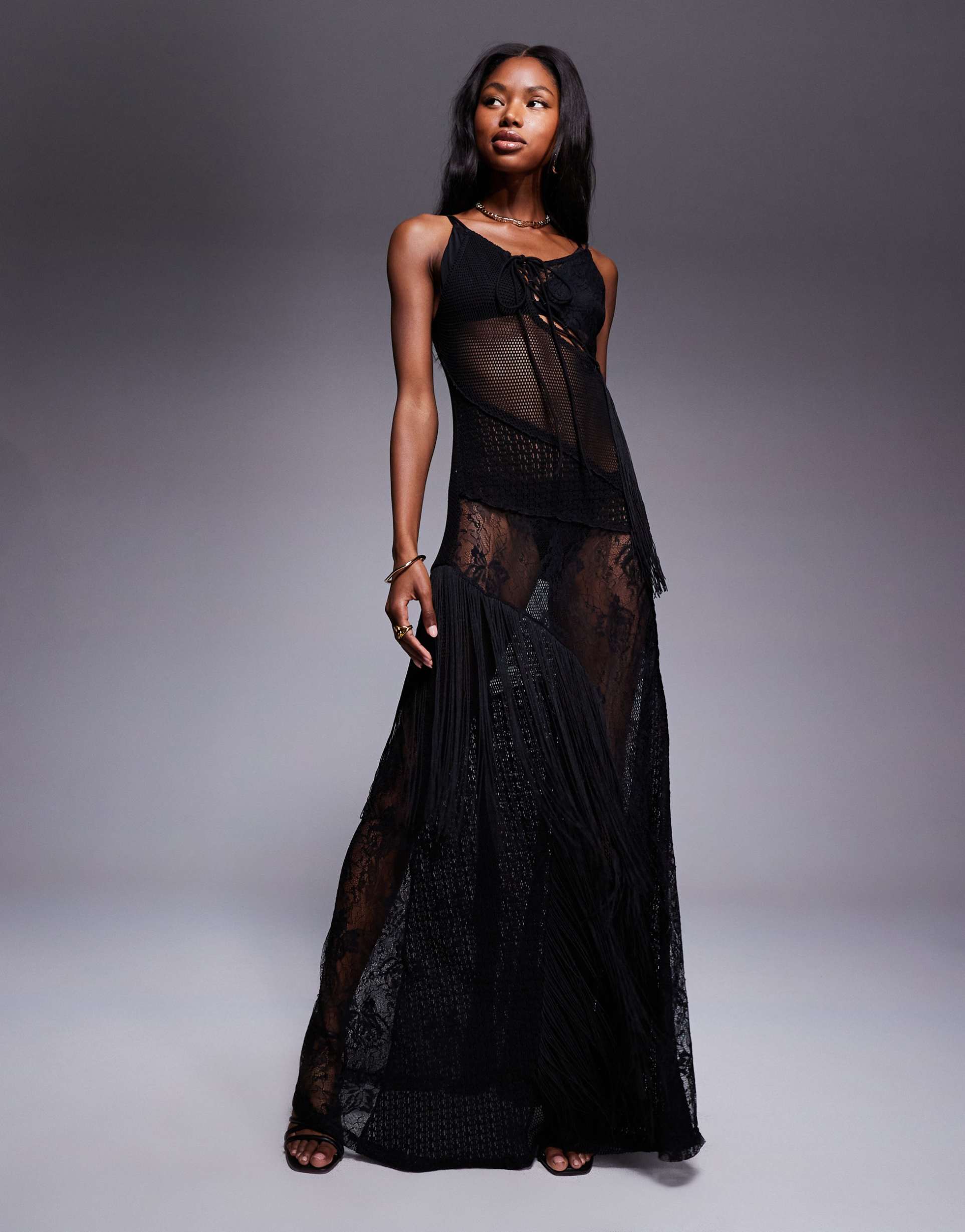 Black Fringe Maxi Dress