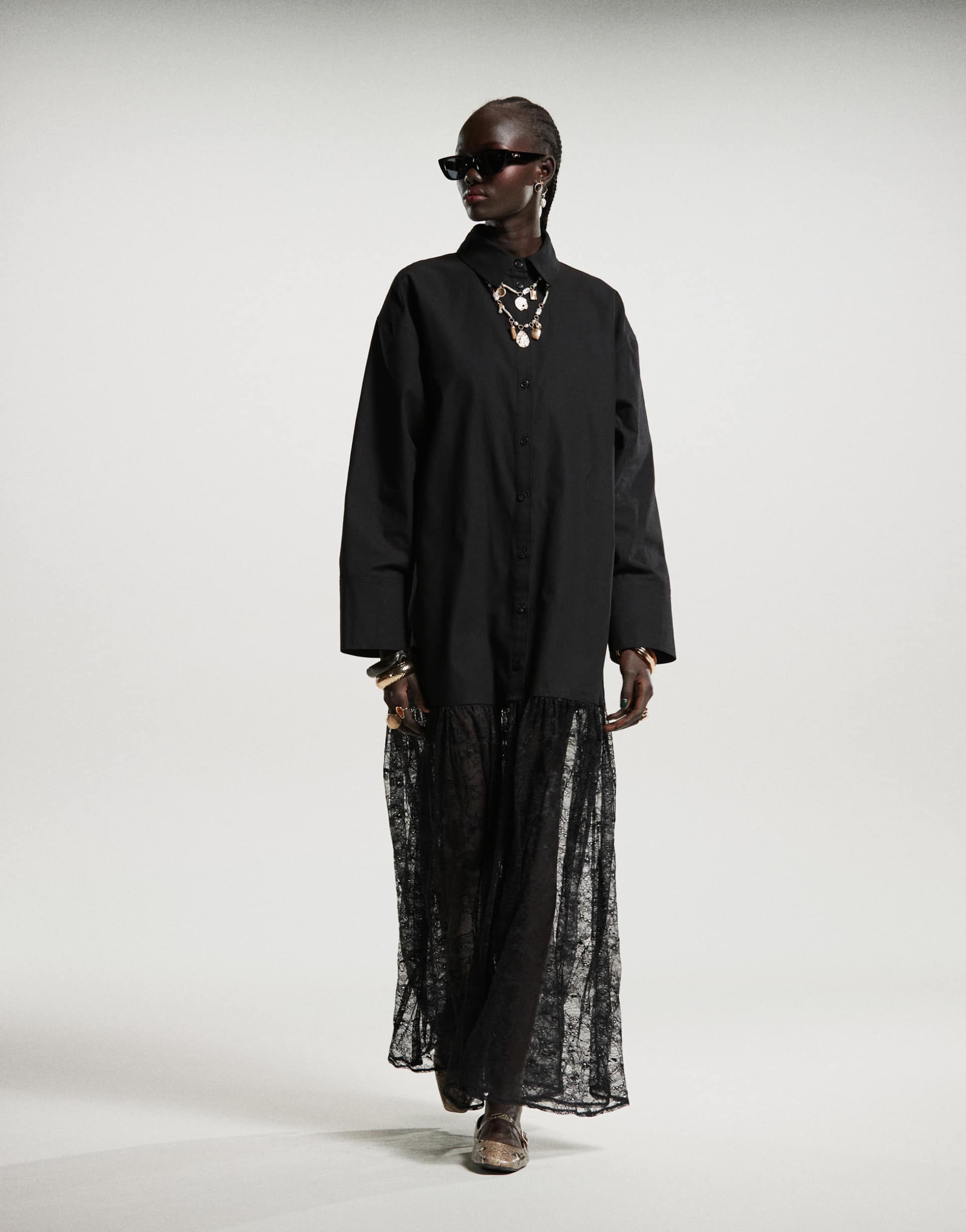 Black Lace Shirt Dress