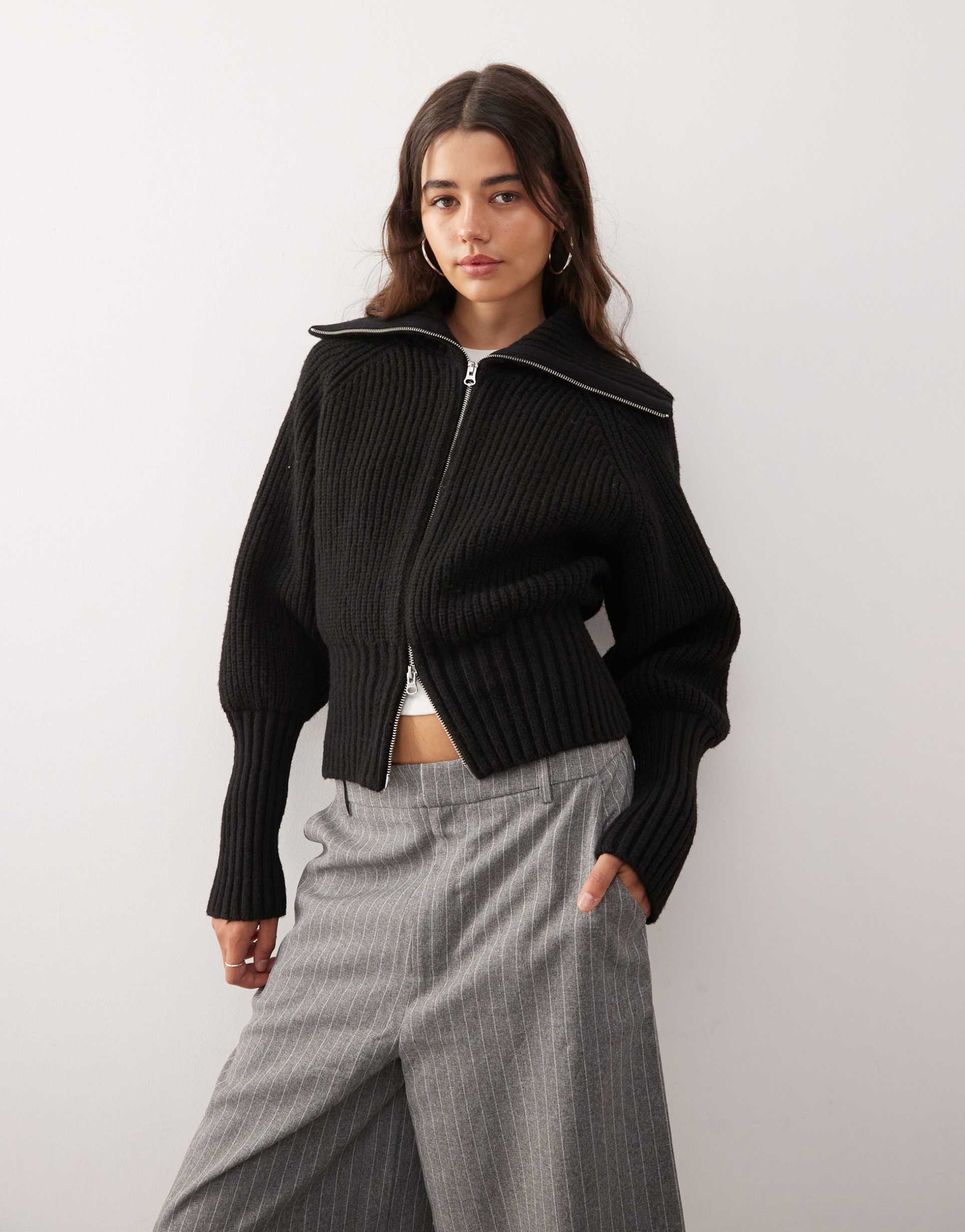 Black Ribbed Knit Cardigan