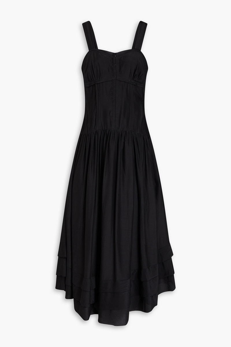 Black Silk Cotton Midi Dress