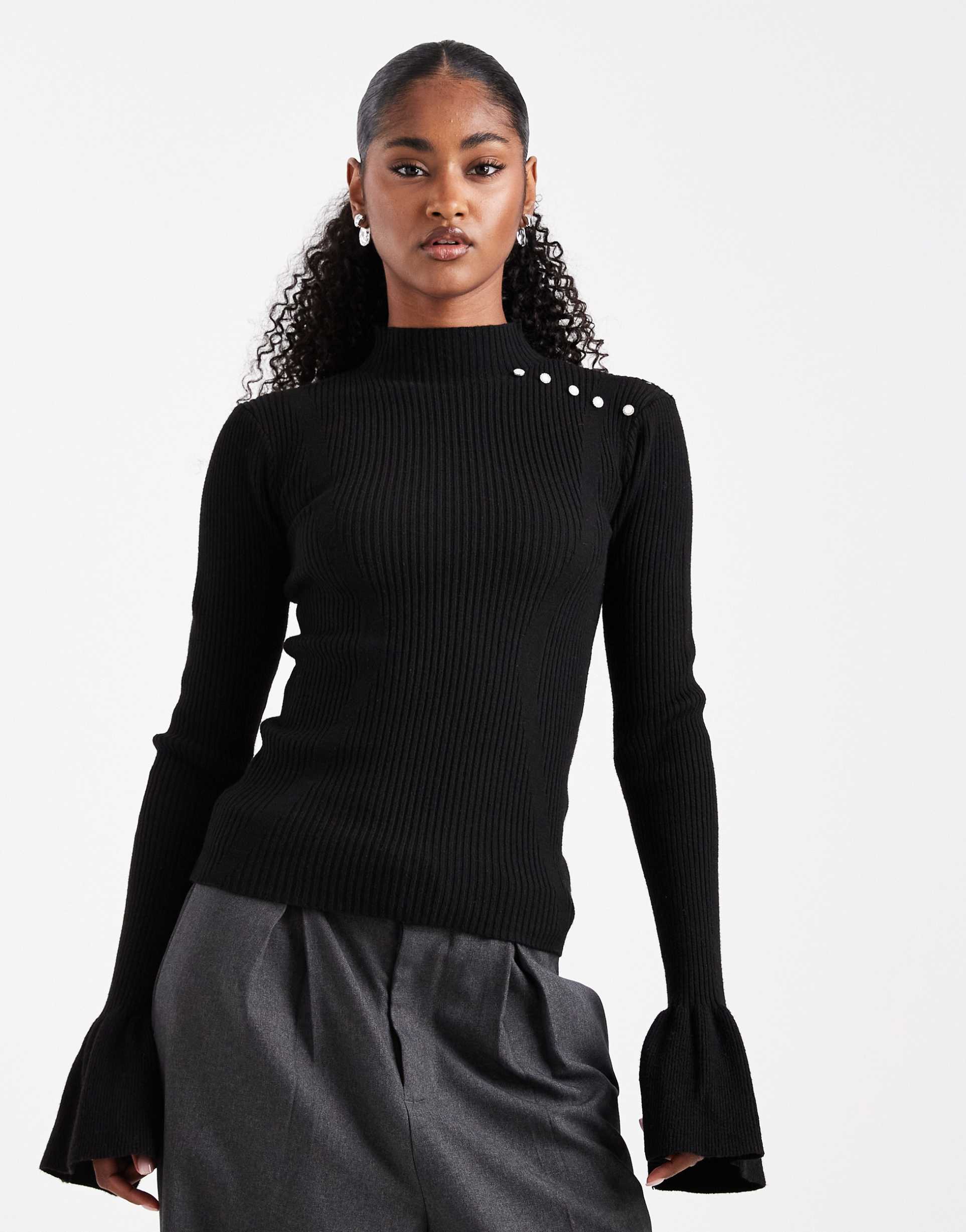 Black Sweater With Pearl Details