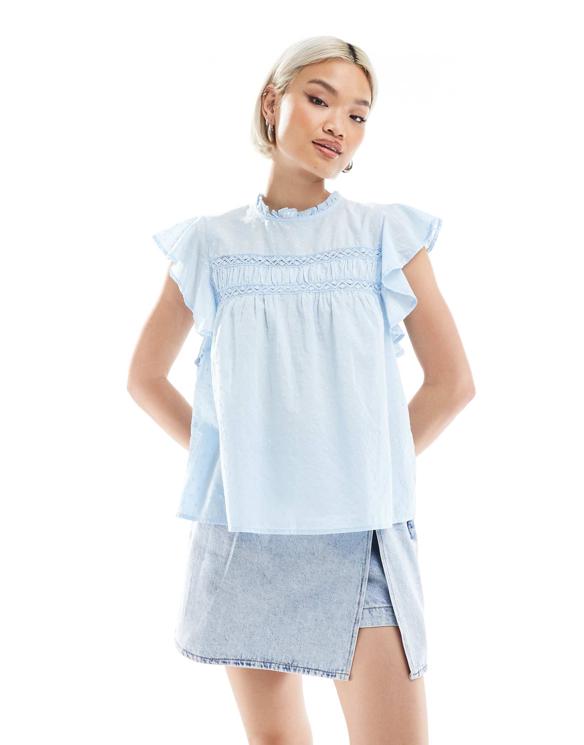 Blue Flutter Sleeve Top