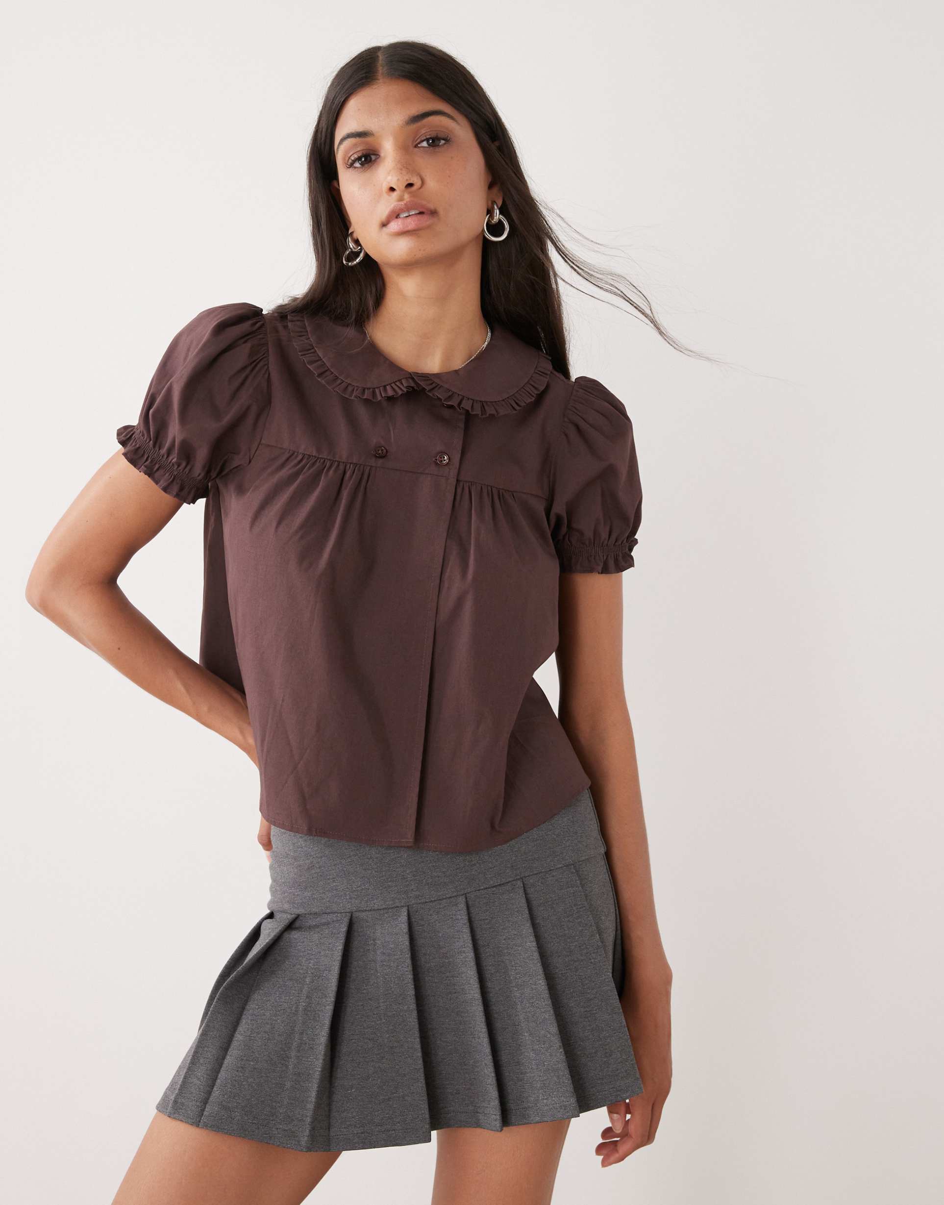 Brown Casual Babydoll Top