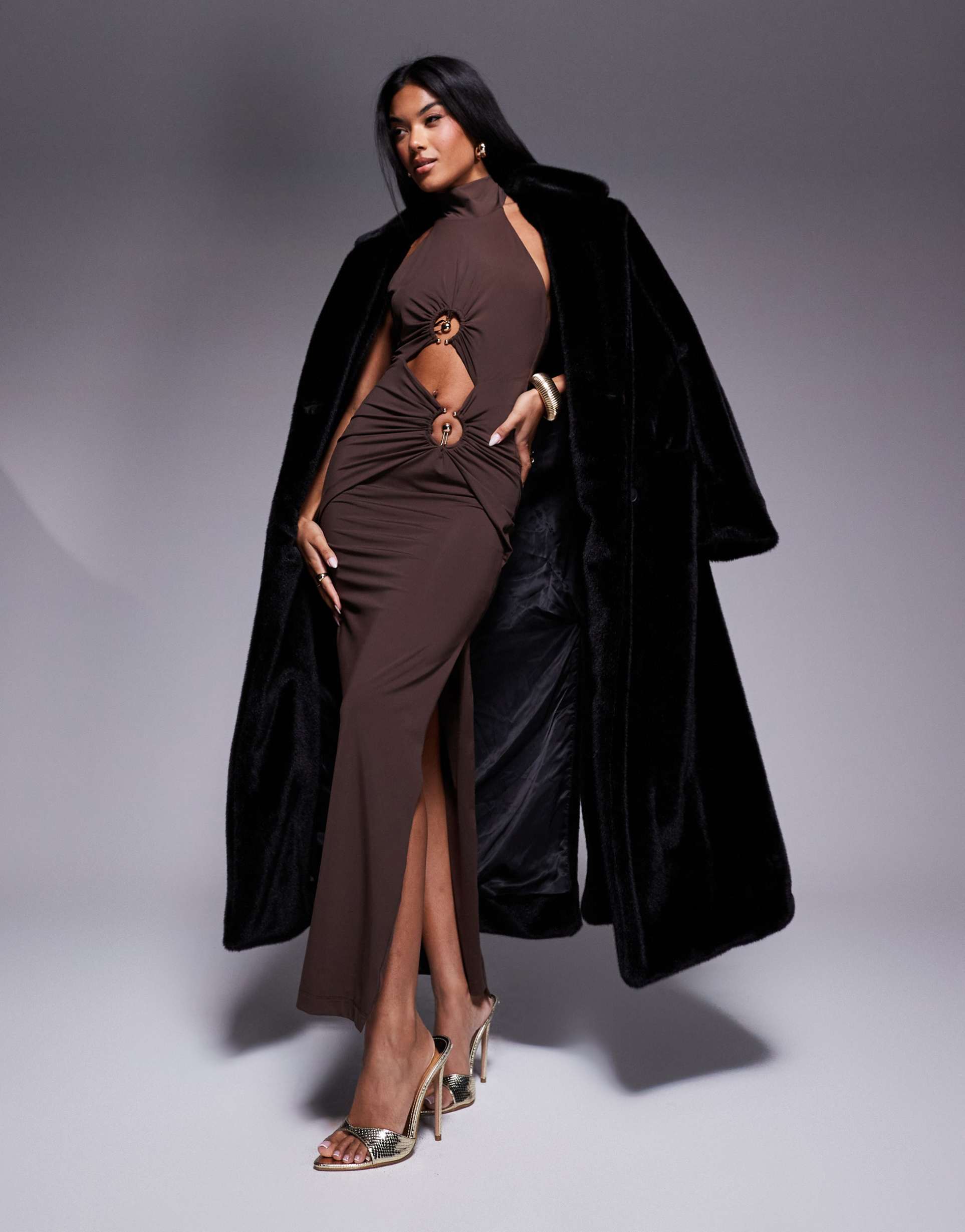 Brown Cut Out Dress