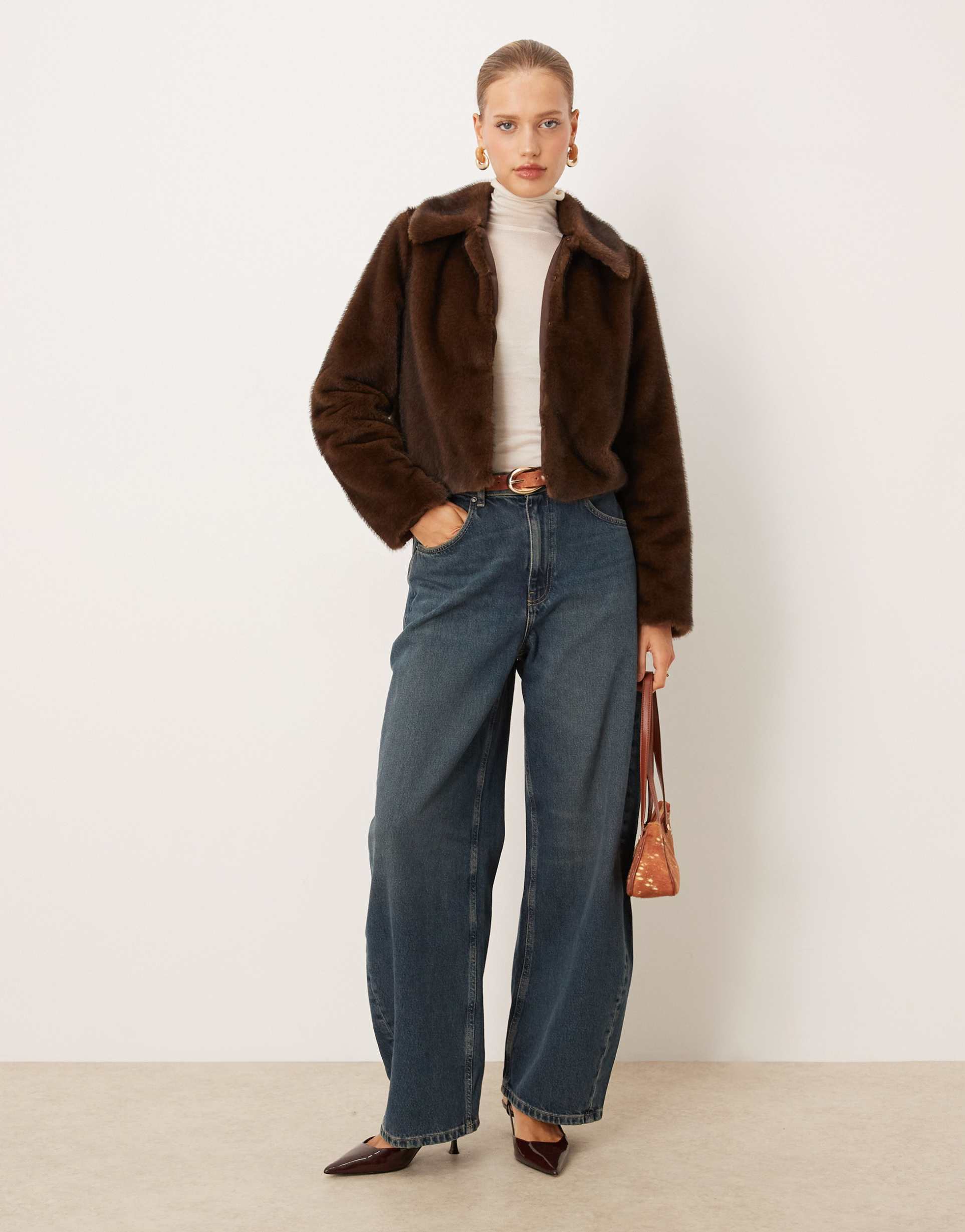 Brown Faux Fur Collar Jacket