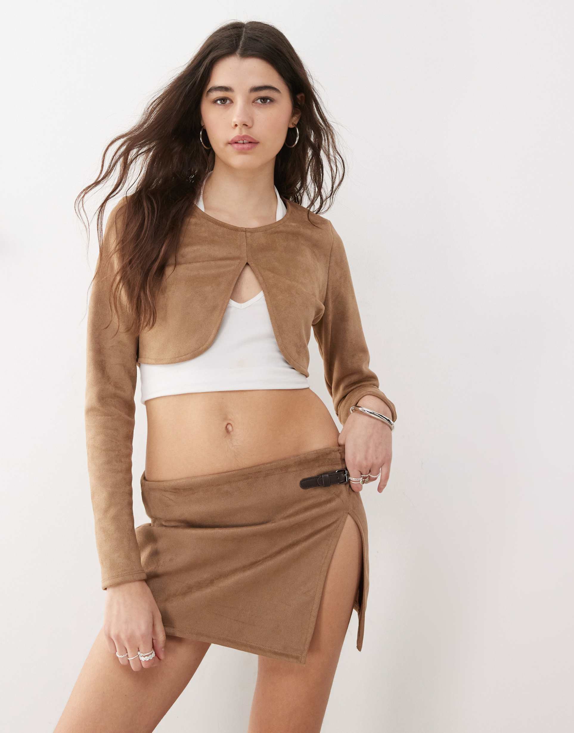 Brown Long Sleeve Crop Top