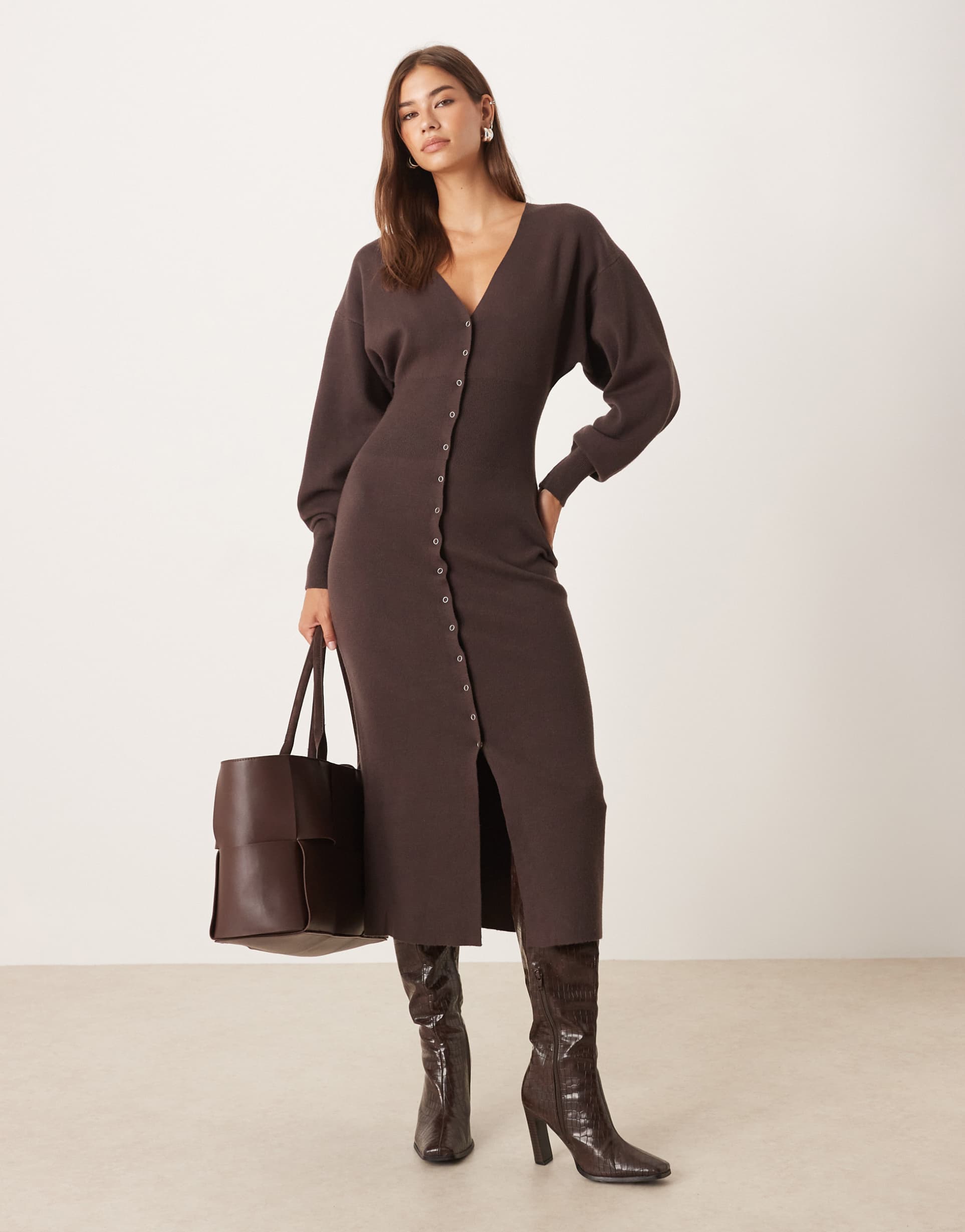 Brown Midi Shirt Dress