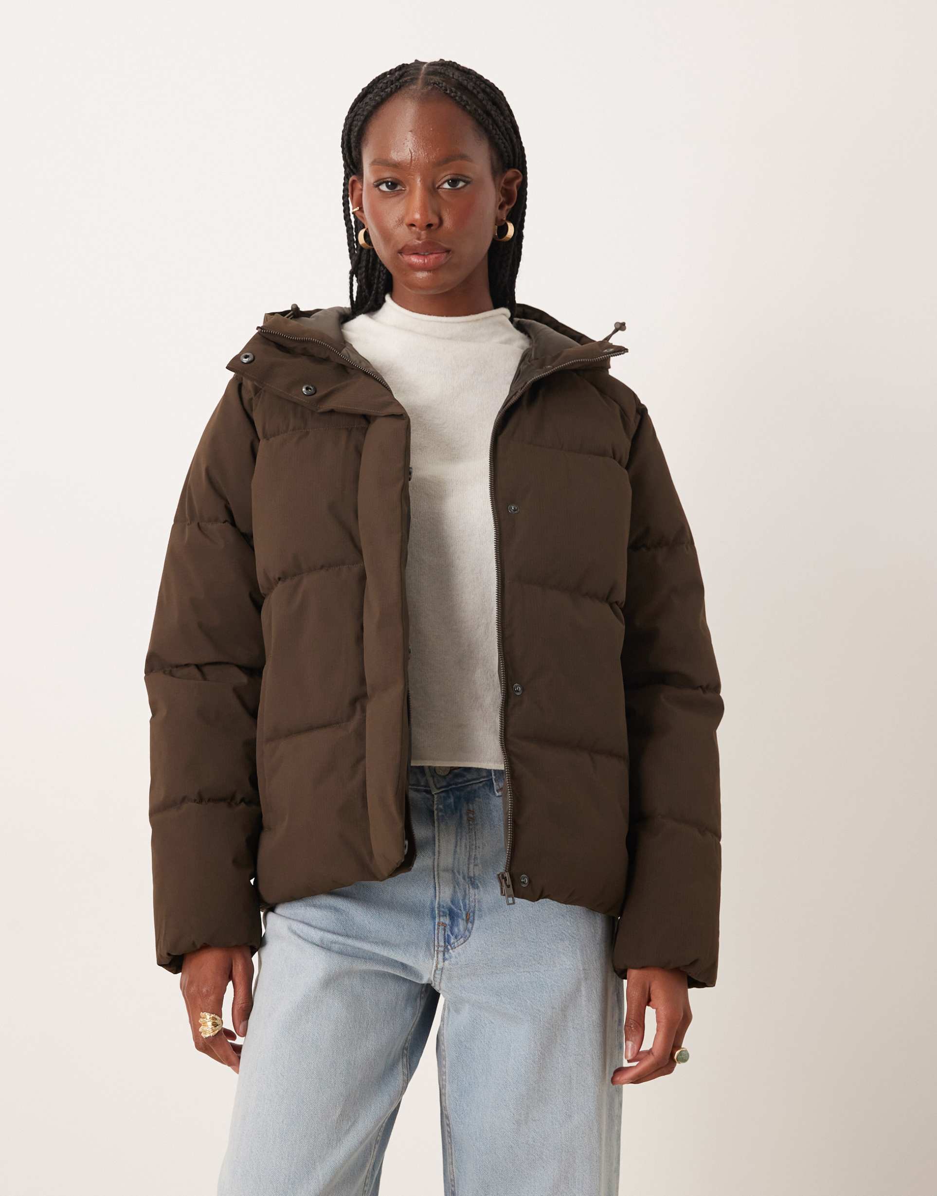 Brown Puffer Jacket With Hood