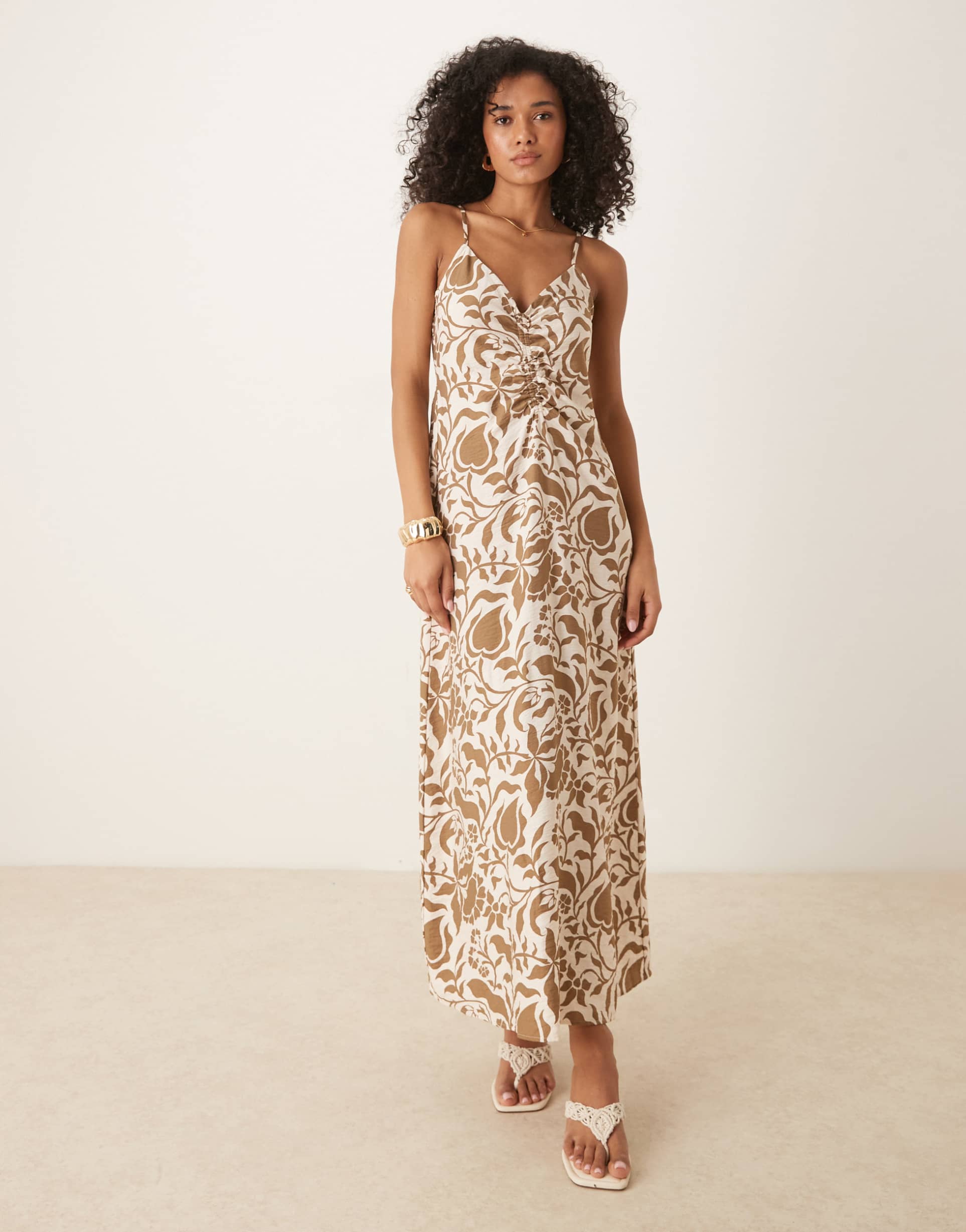 Brown Ruched Detail Dress