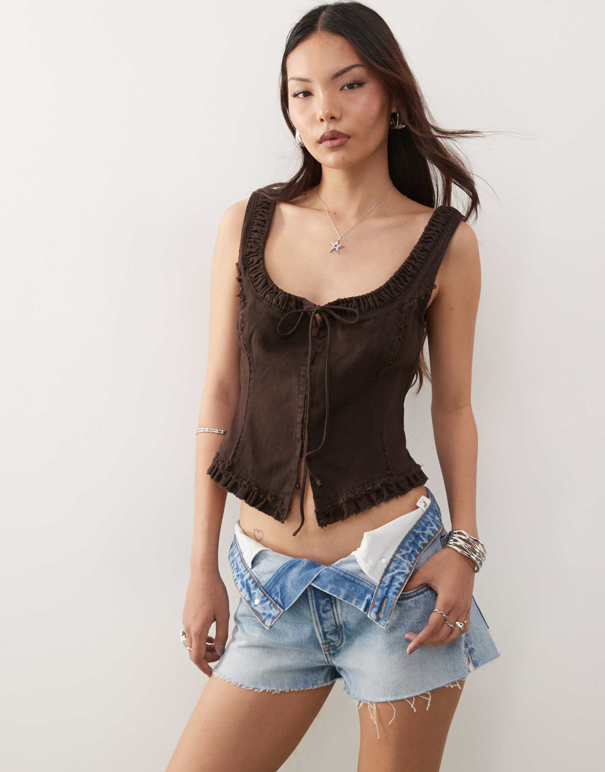 Brown Tie Front Top