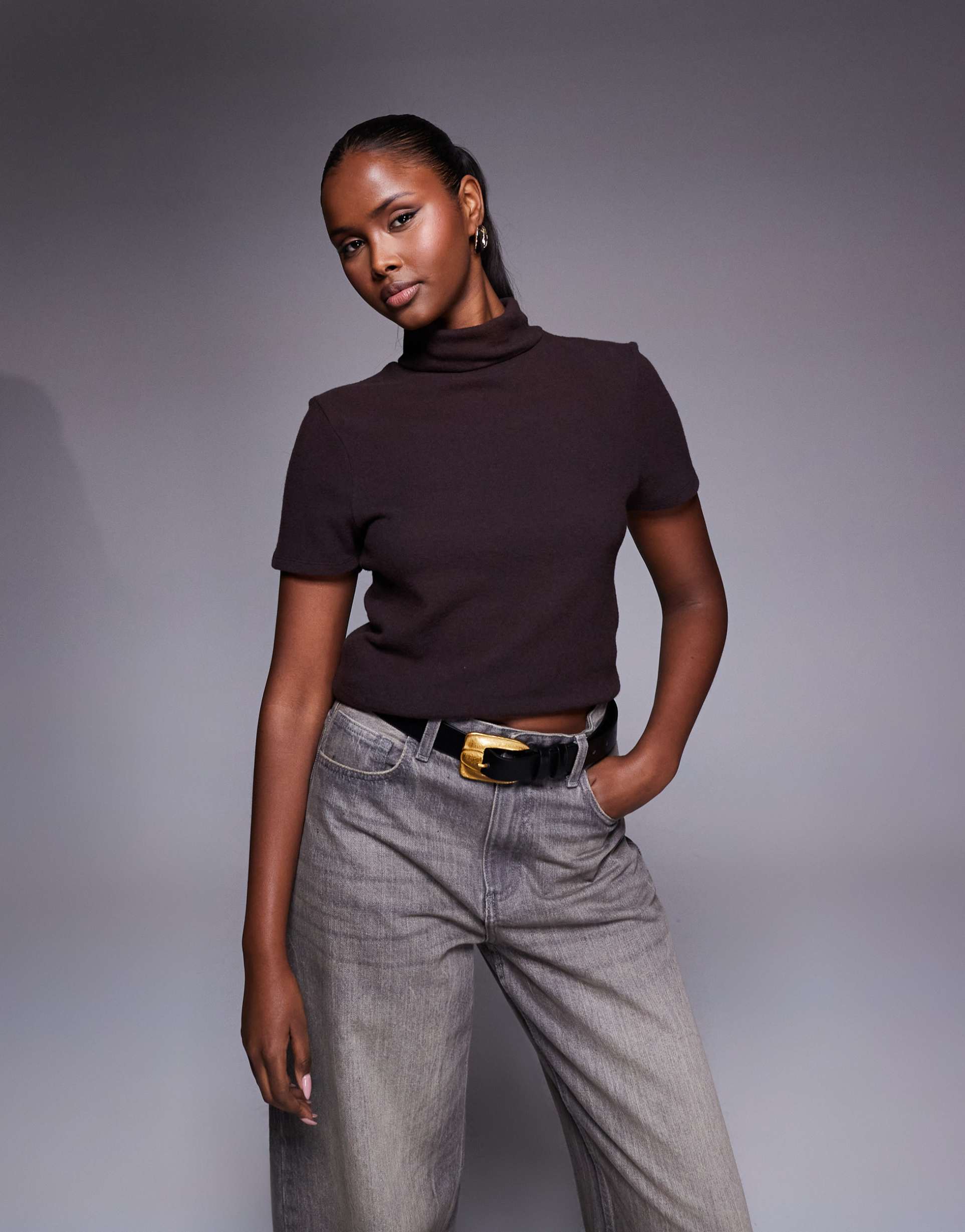 Brown Turtleneck Top