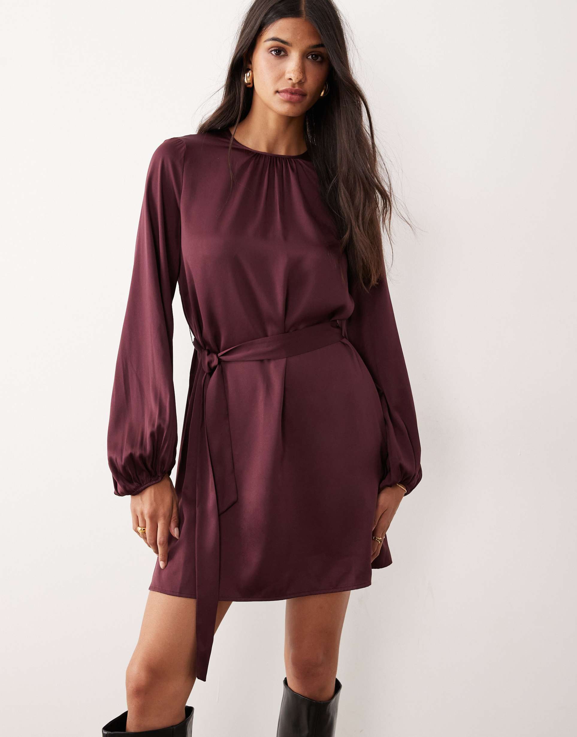 Burgundy Balloon Sleeve Dress