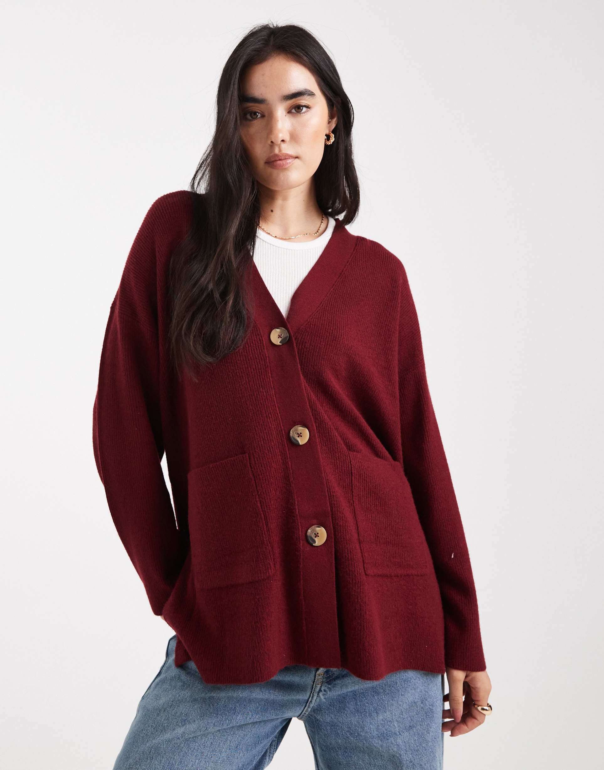 Casual Burgundy Cardigan