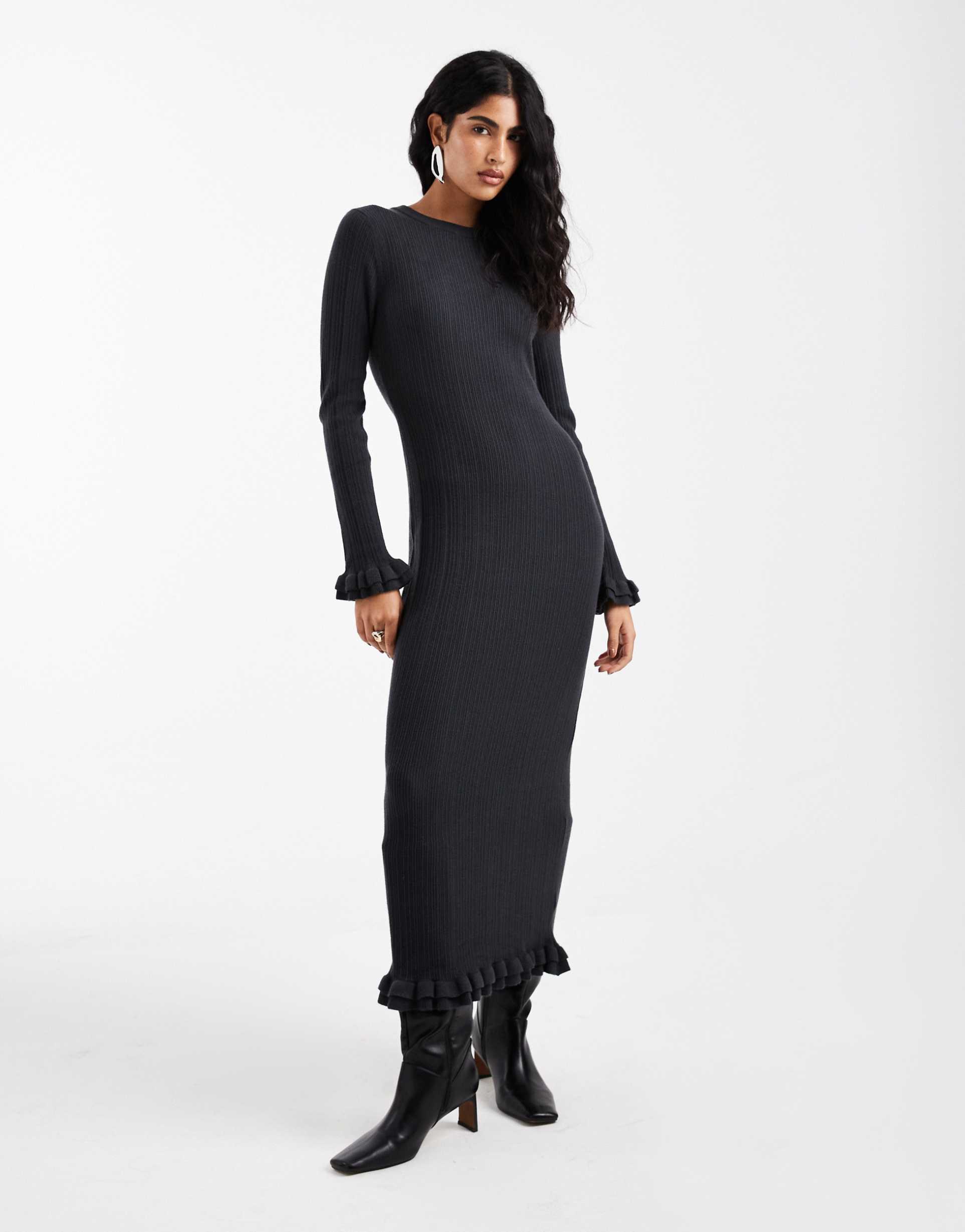 Charcoal Ribbed Maxi Dress