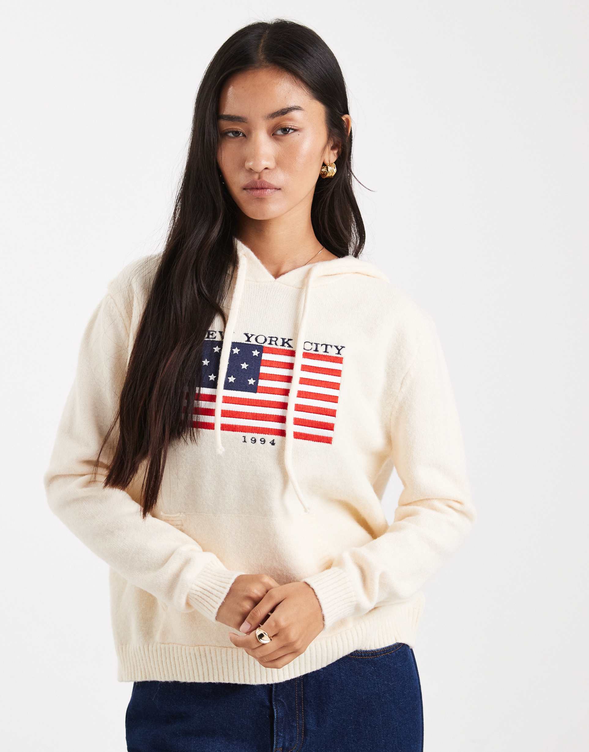 Cream Color Hoodie With Applique