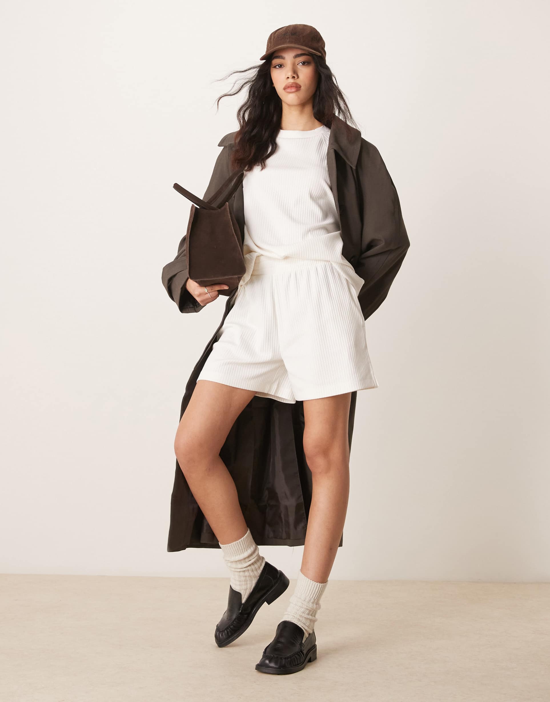 Cream Ribbed Shorts For Casual Outfits