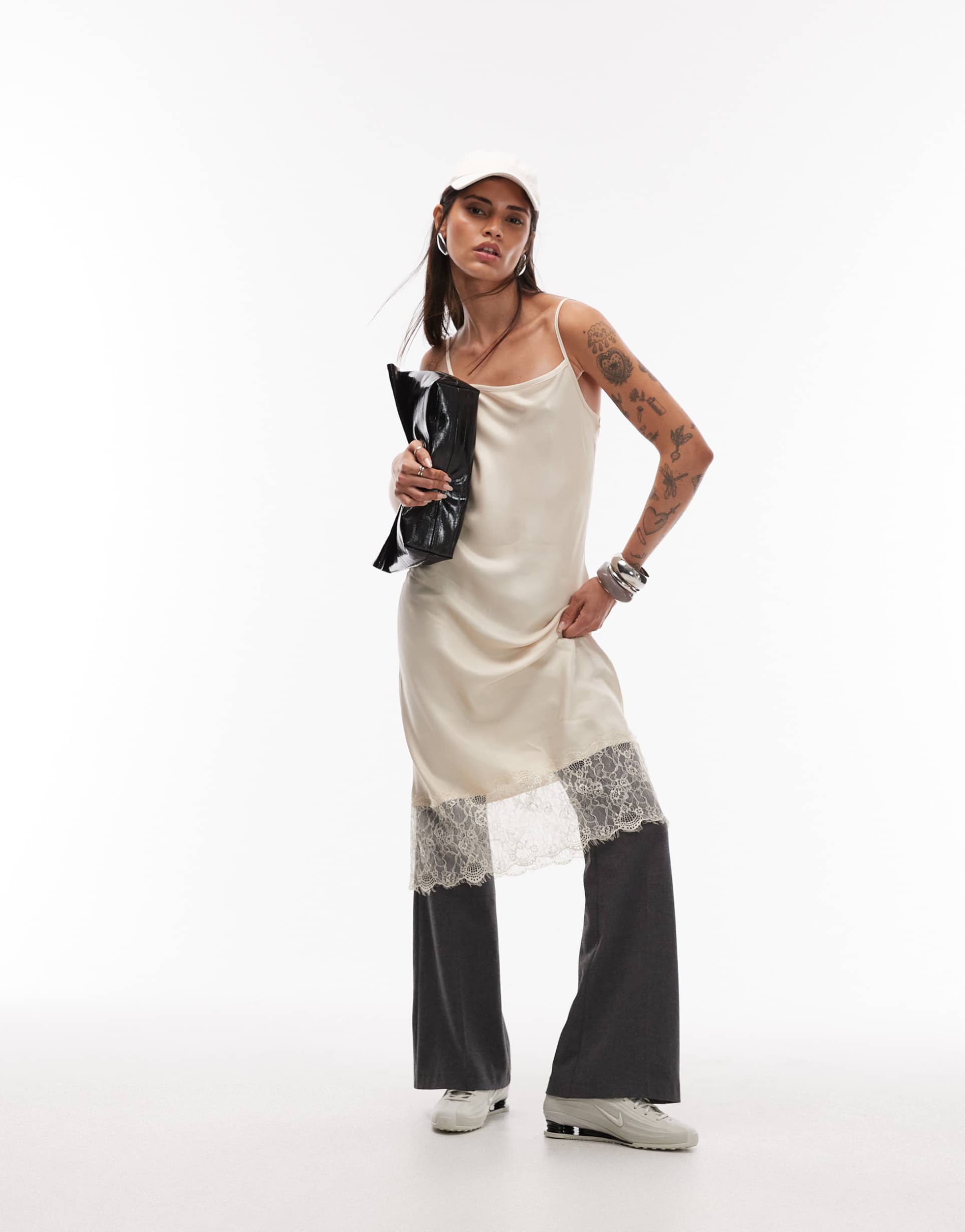 Cream Slip Dress With Lace Trim