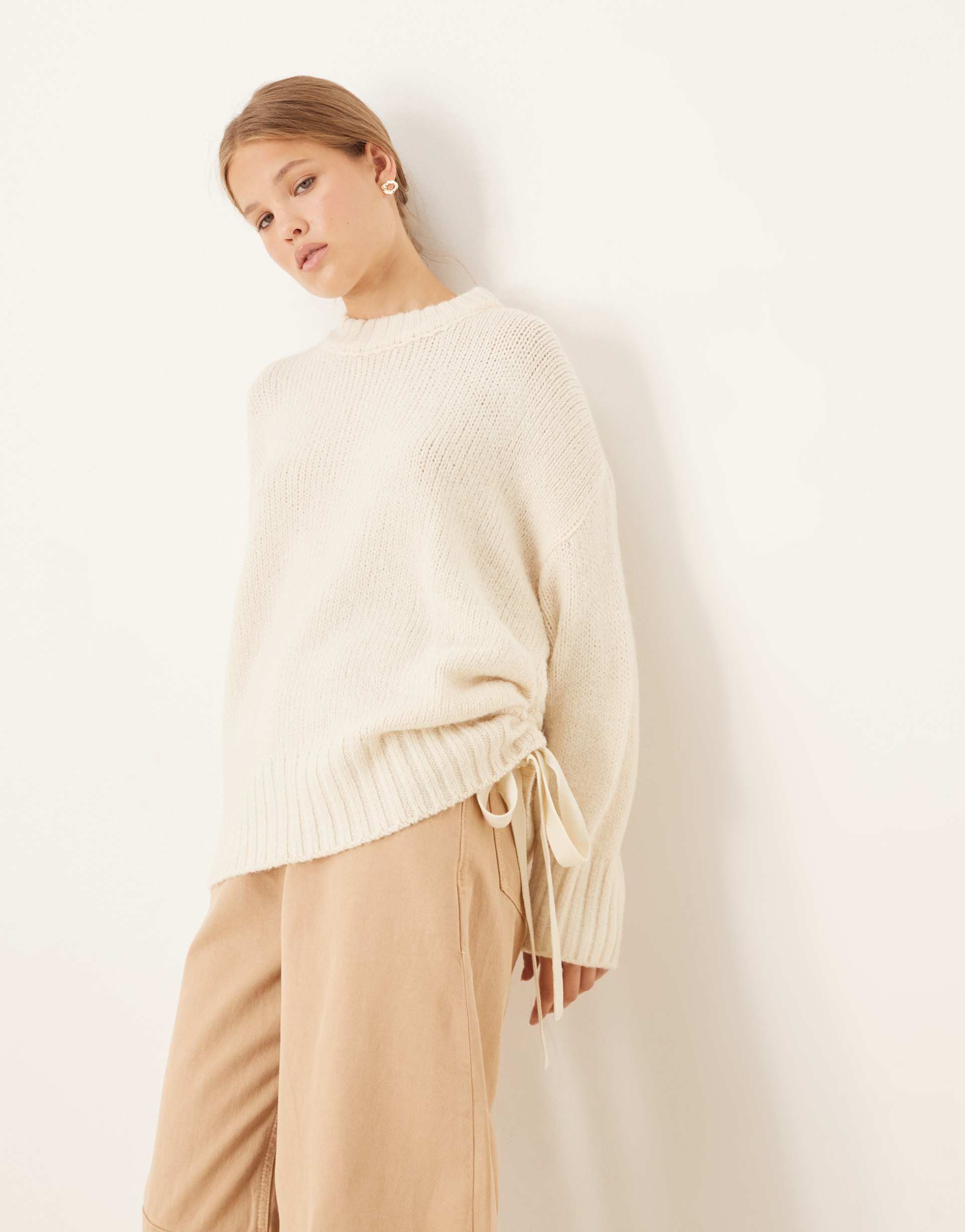 Cream Tie Neck Sweater