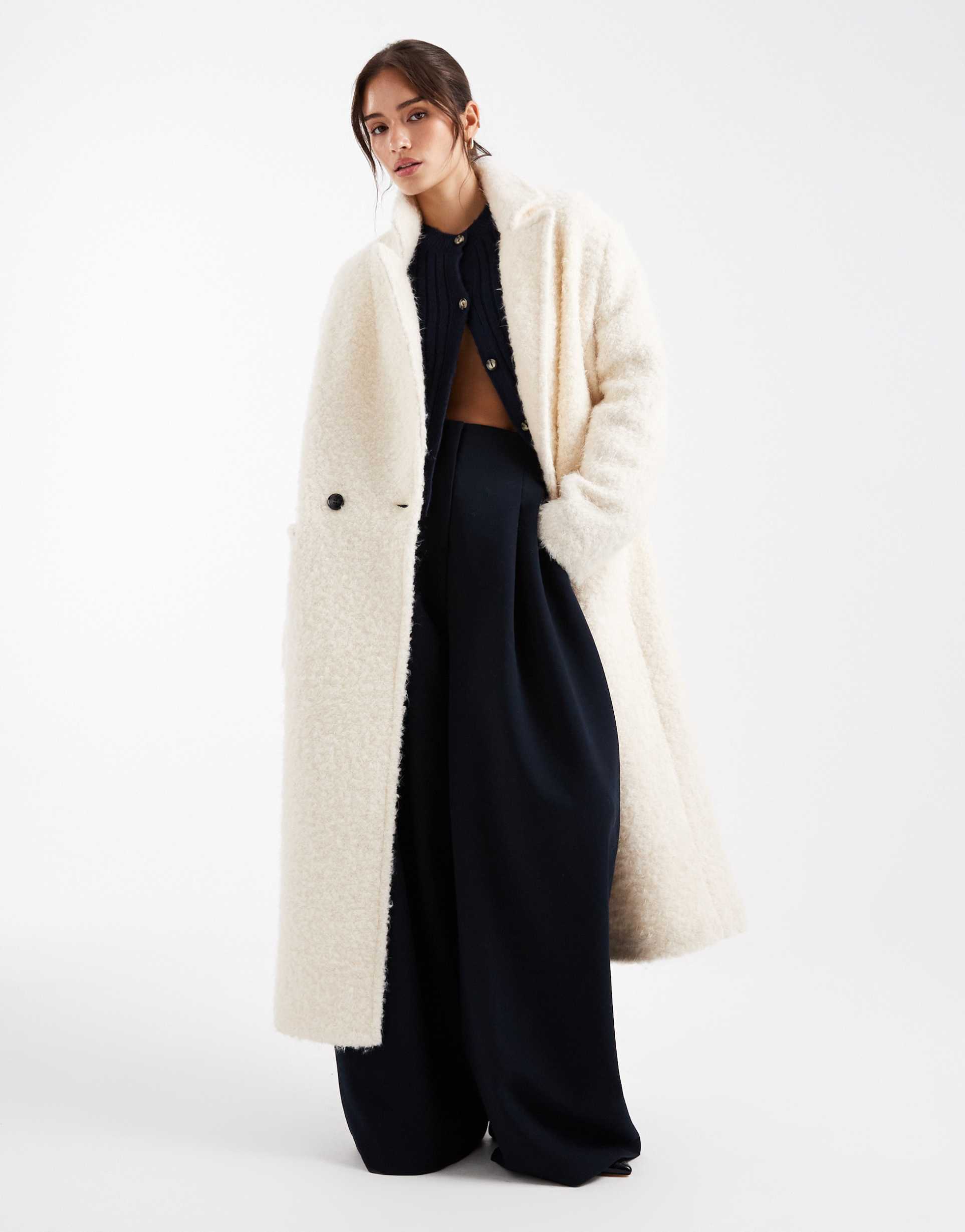 Cream Wool Overcoat For Winter Layering