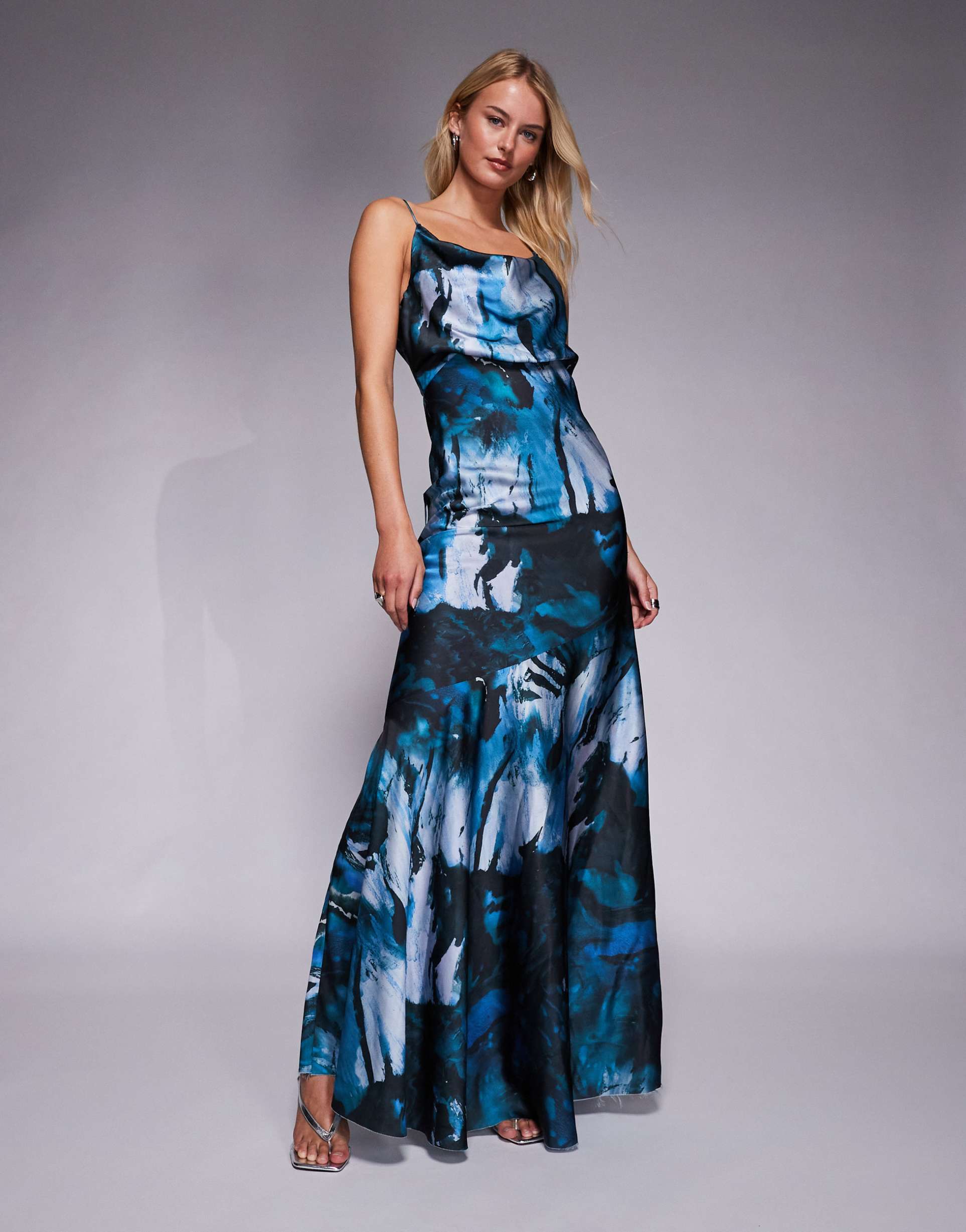 Dark Blue Satin Maxi Dress