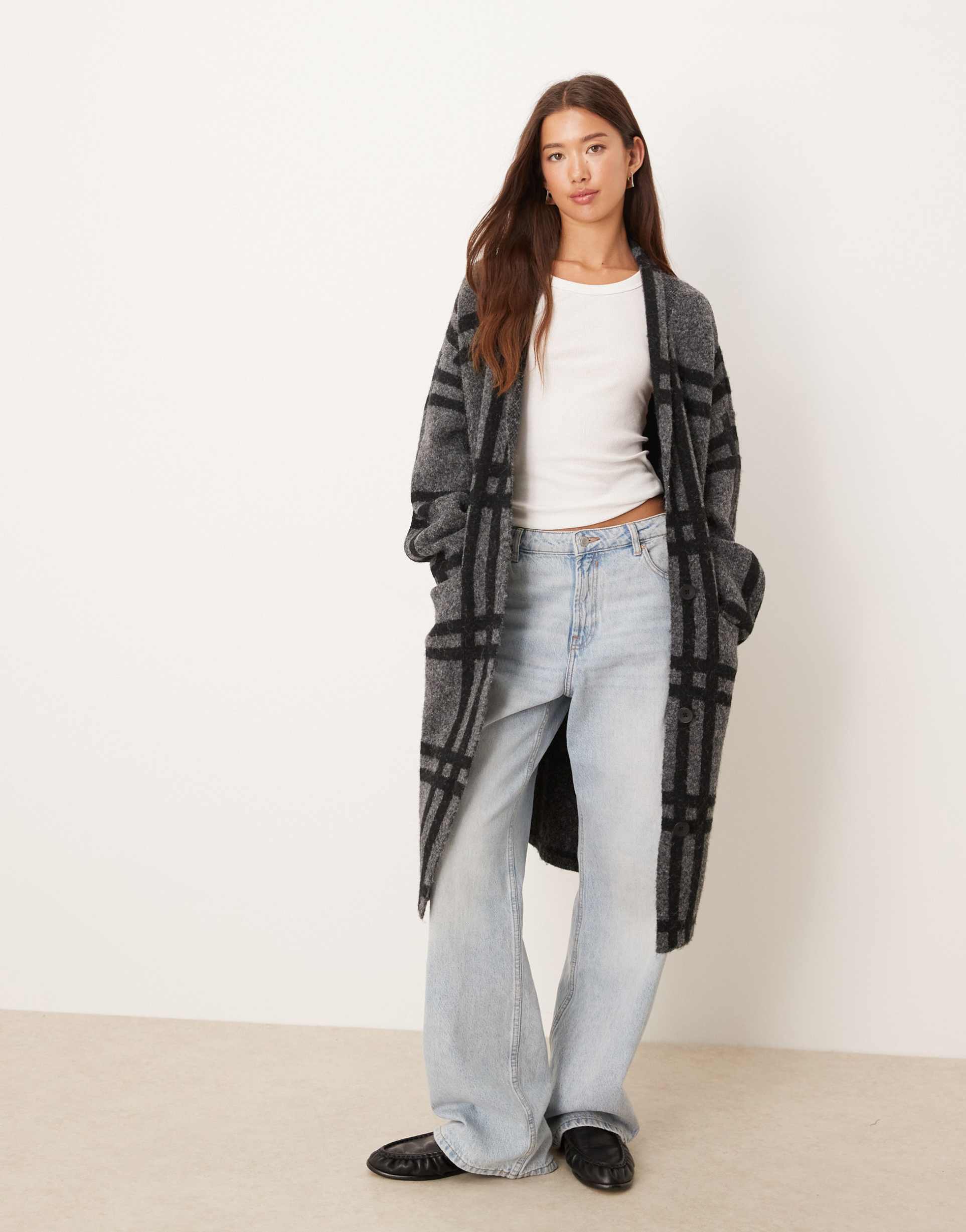 Dark Gray Check Pattern Coat