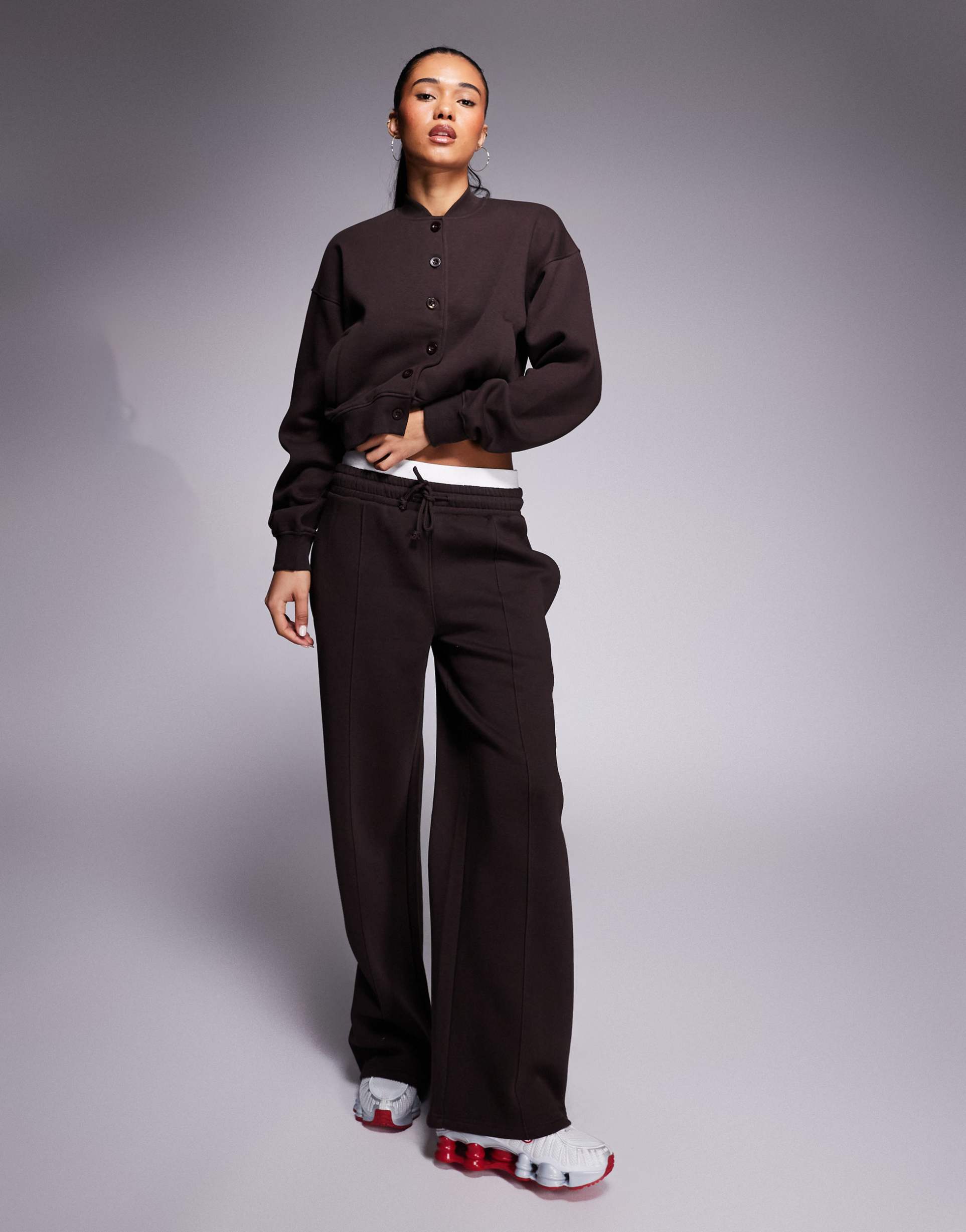 Elastic Waistband Sweatpants In Chocolate Brown