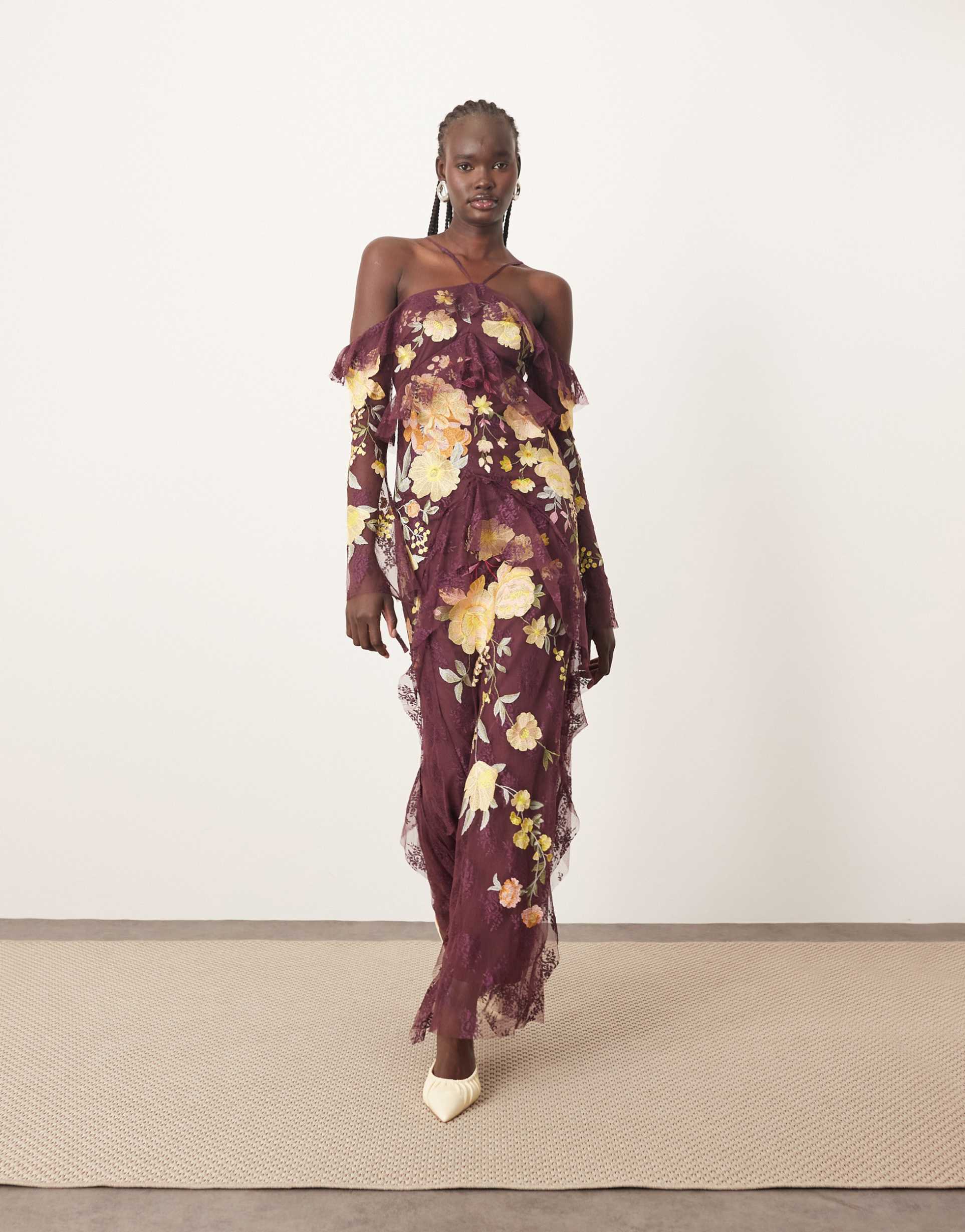 Embroidered Ruffle Maxi Dress