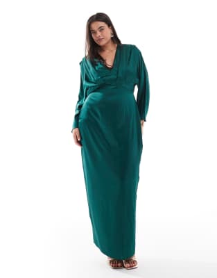 Emerald Green Satin Maxi Dress