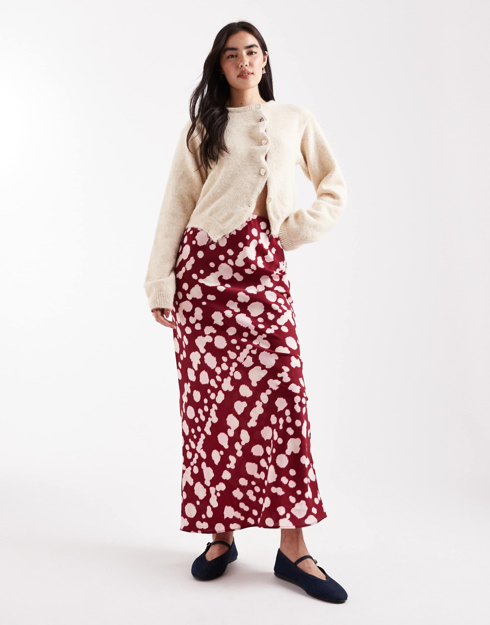 Fall Wardrobe Staple Burgundy Dotted Skirt