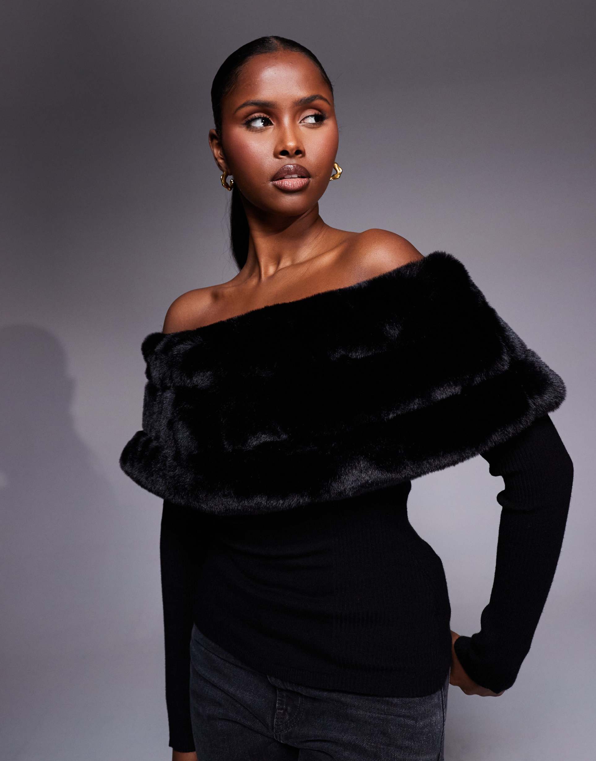 Faux Fur Trim Sweater