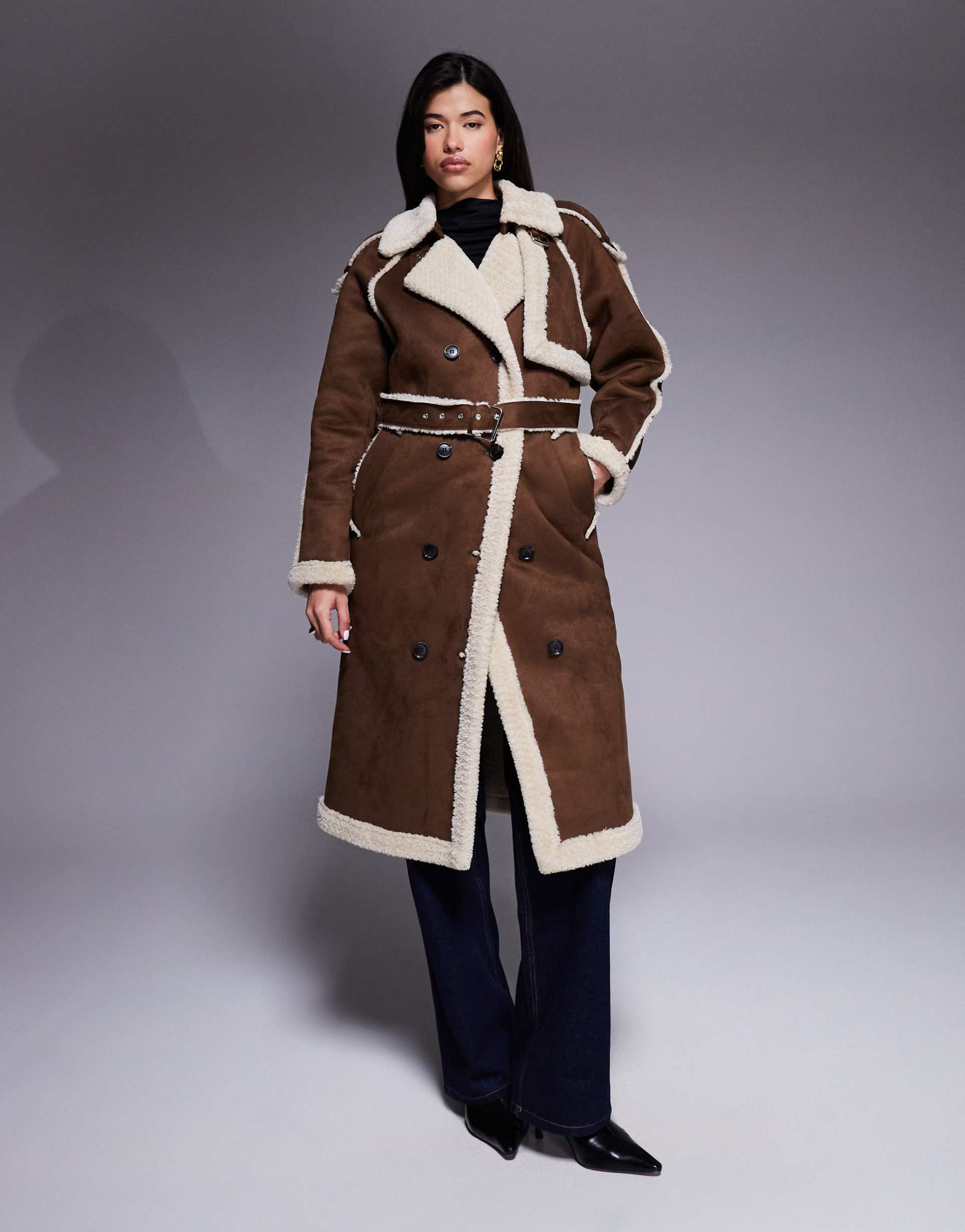 Faux Shearling Trim Coat