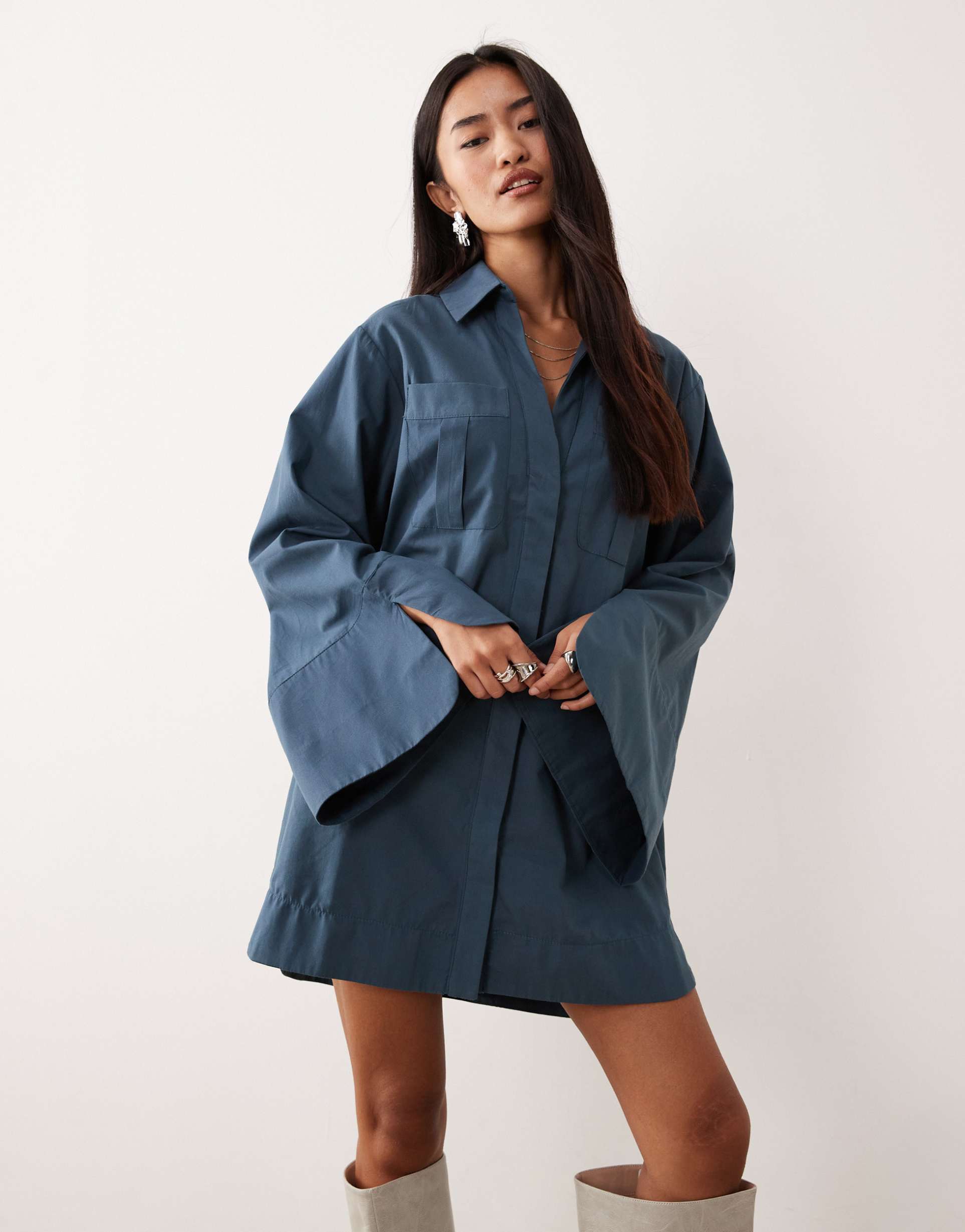 Flared Sleeve Shirt Dress