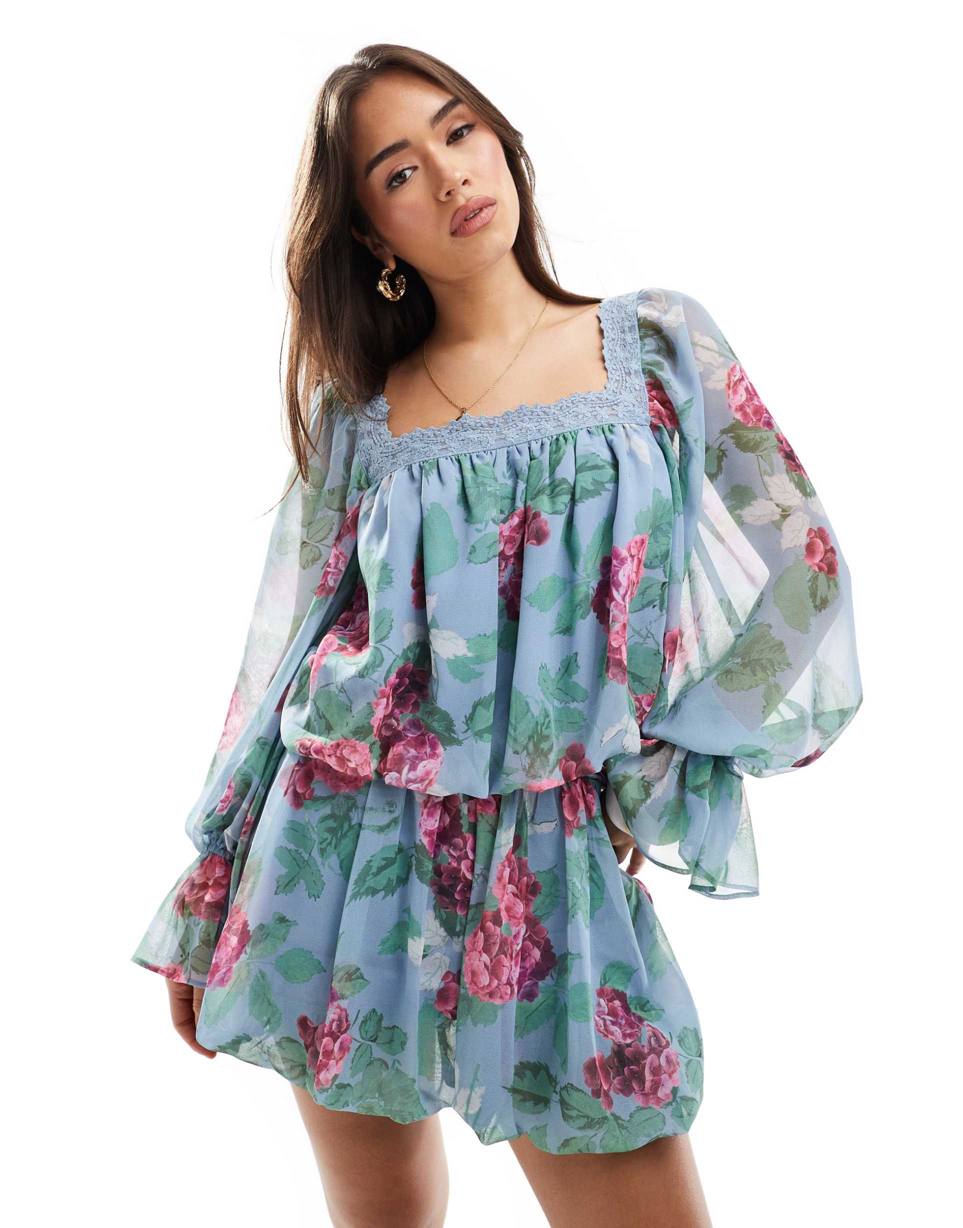 Floral Blouse With Lace Trim