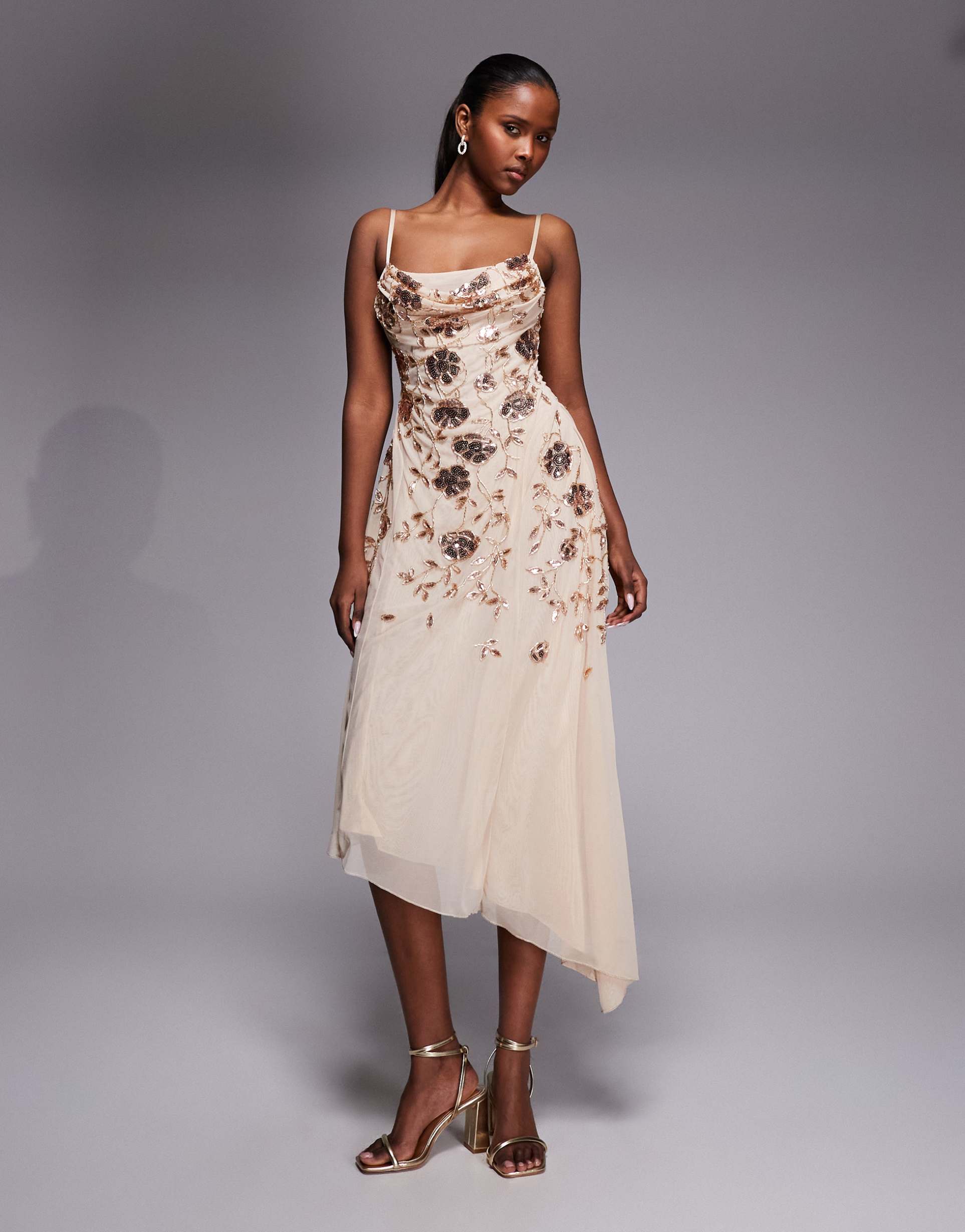 Gold Floral Embellishment Dress