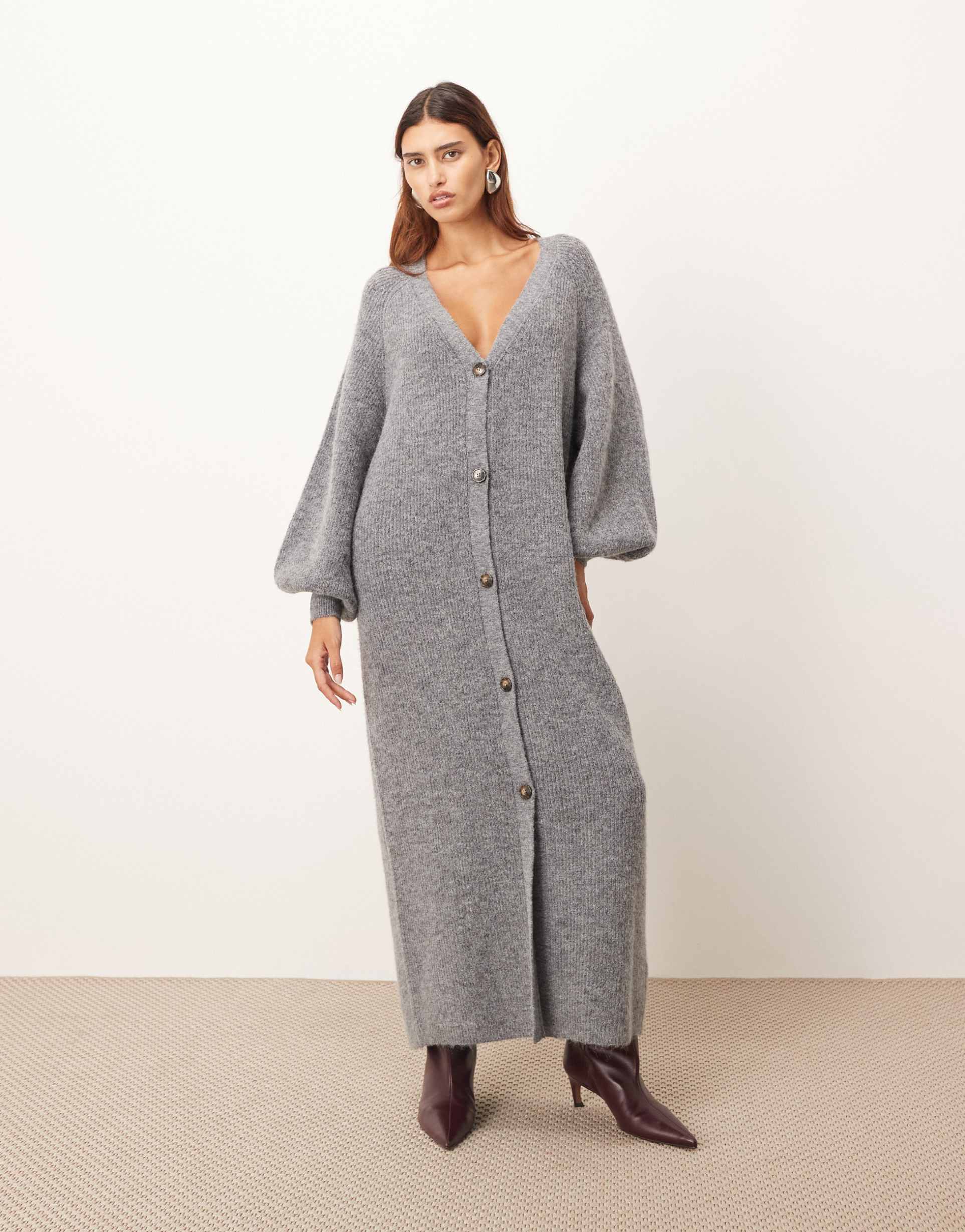 Gray Knit Button Dress