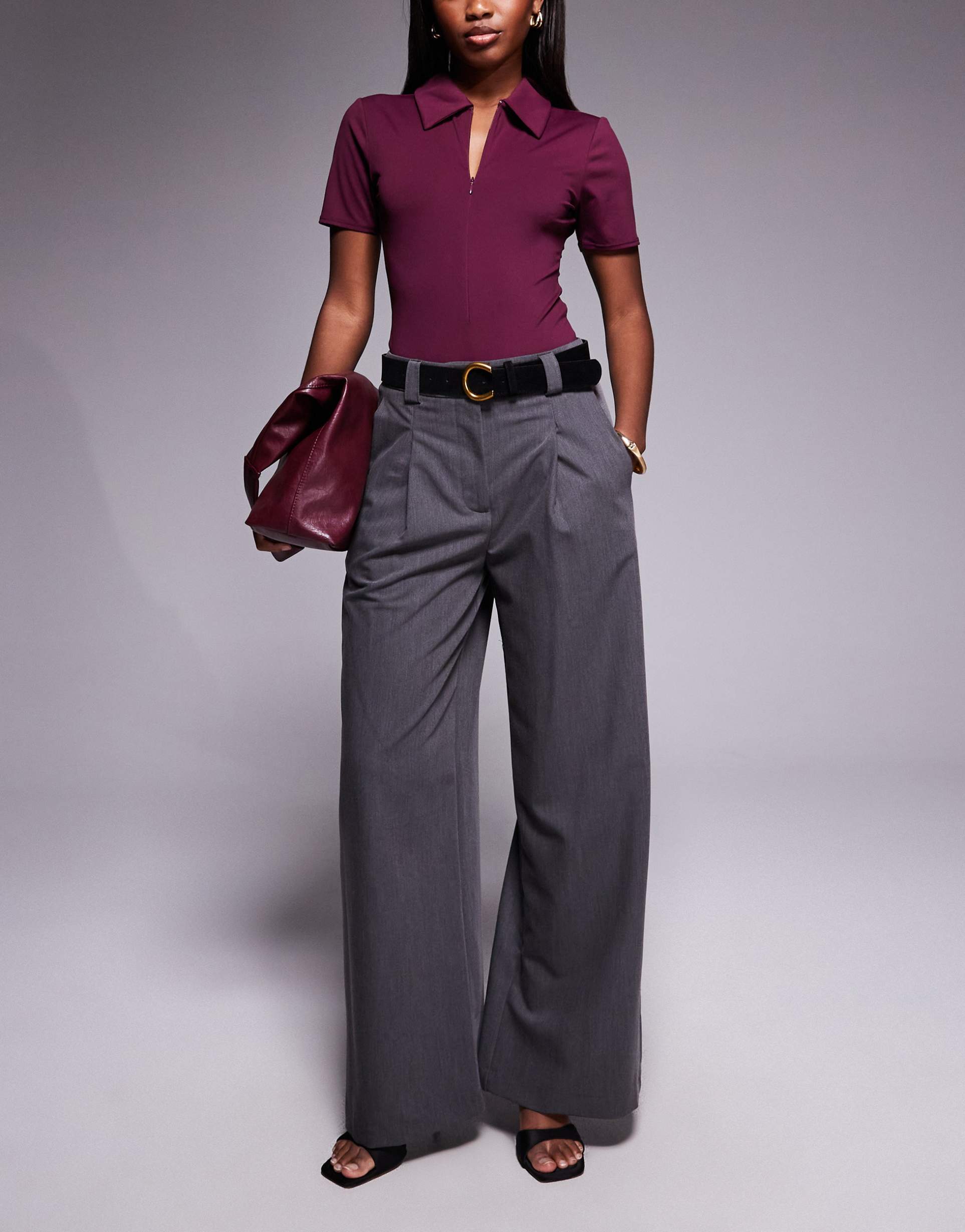 Gray Pleated Pants For Business Casual