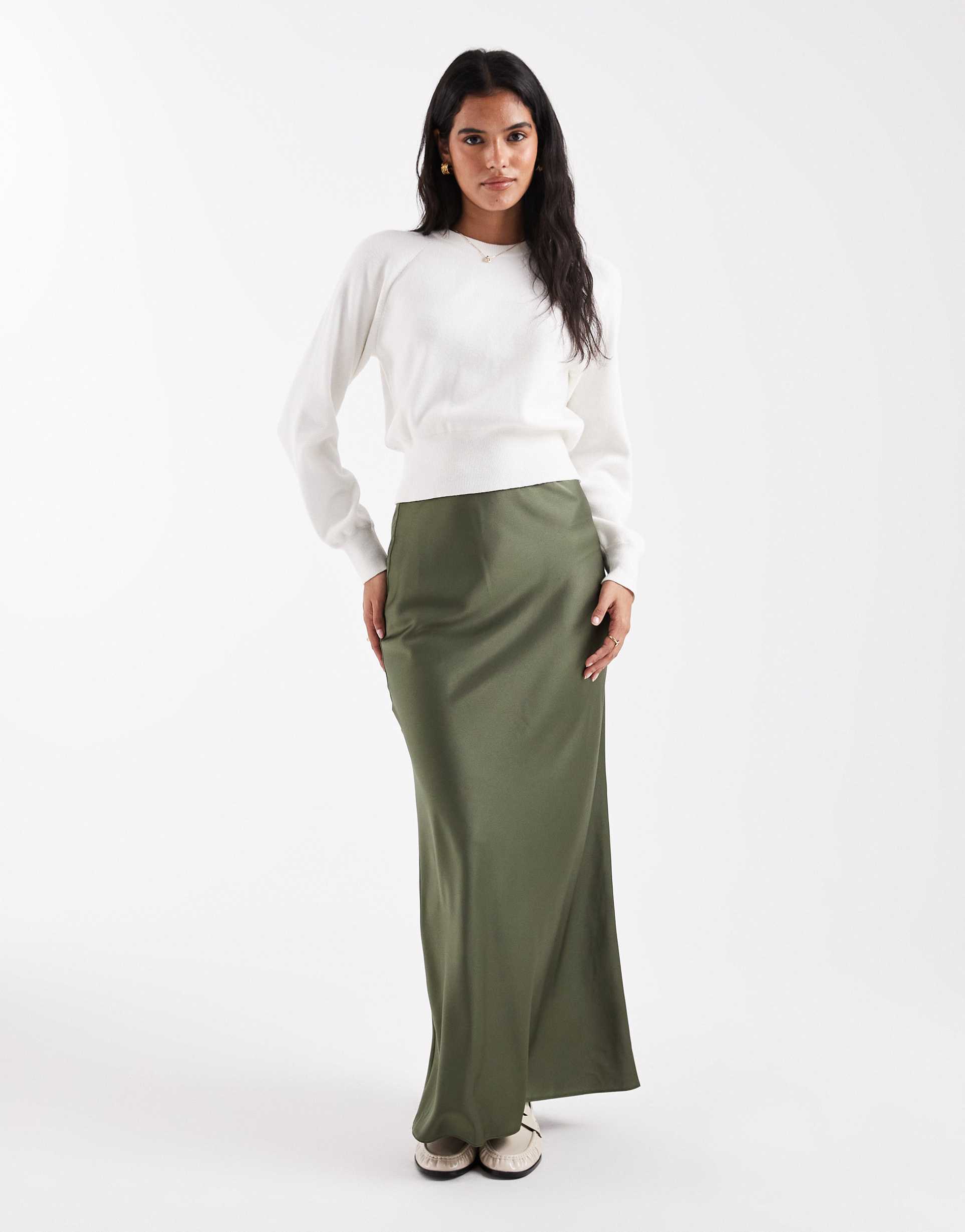 Khaki Satin Panel Maxi Skirt For Formal Evenings