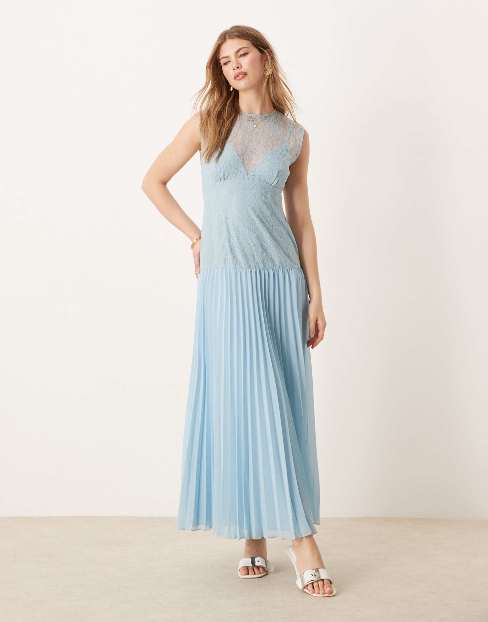 Lace Bodice Pleated Skirt Dress
