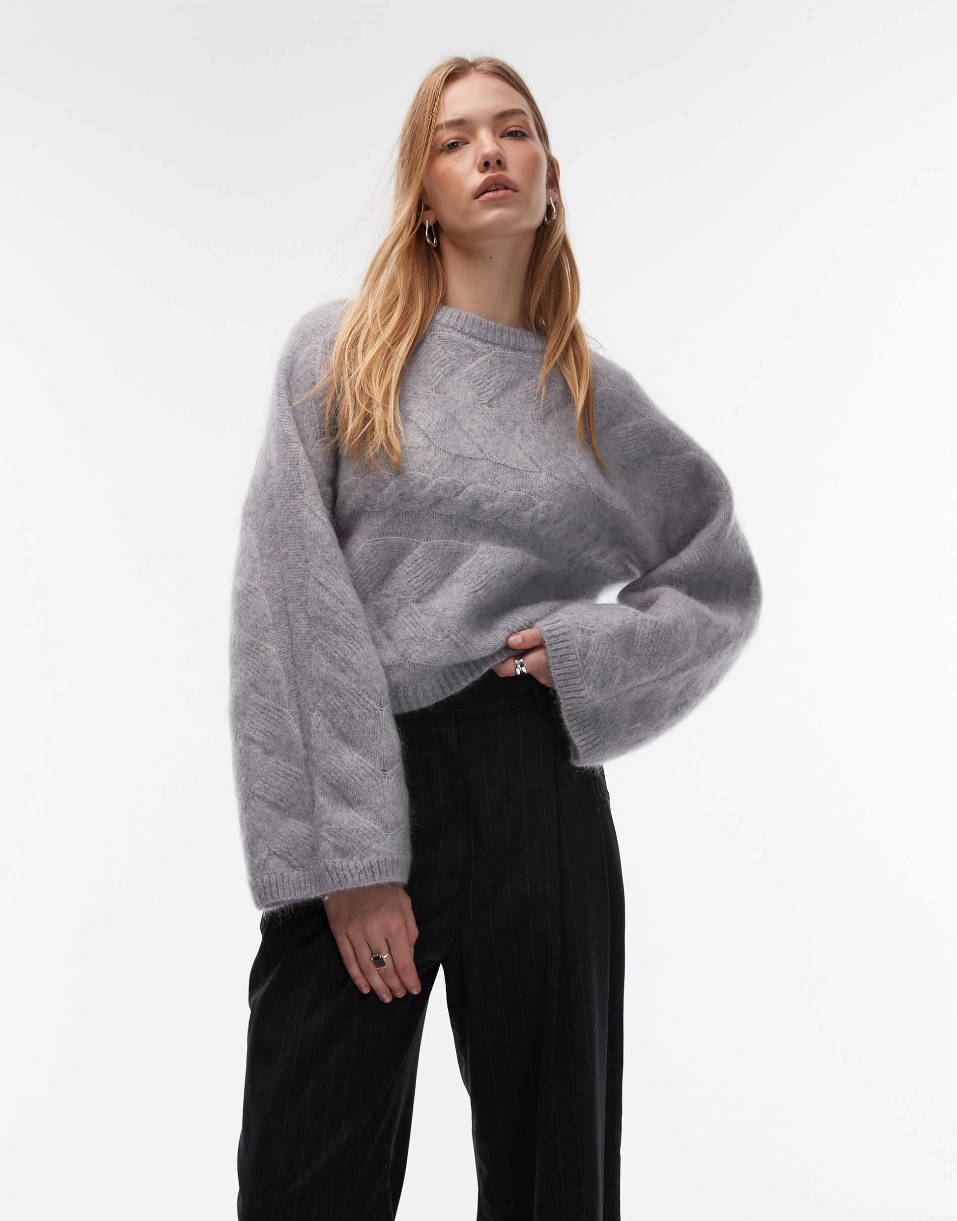 Light Gray Cable Knit Sweater