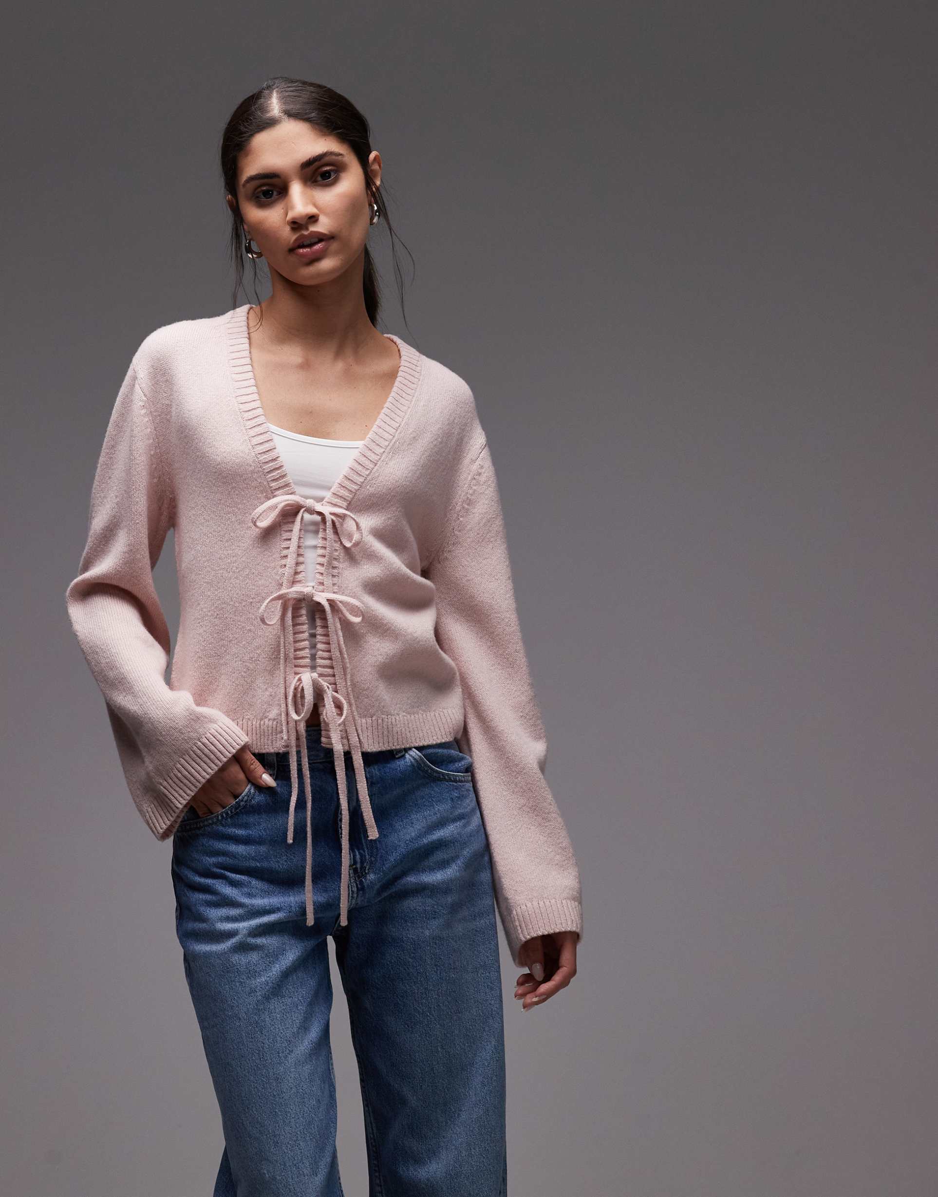 Light Pink V Neck Cardigan