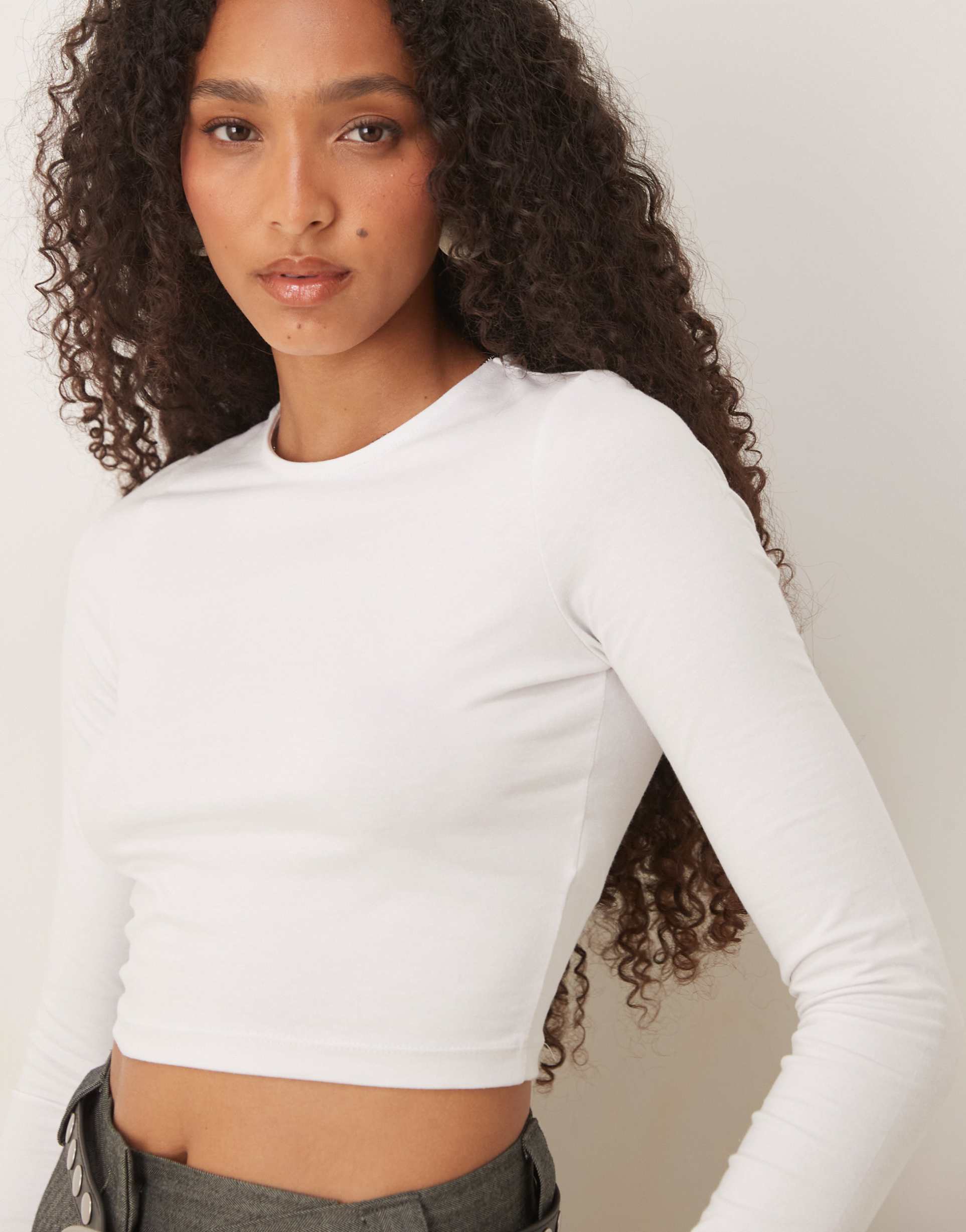 Long Sleeve Fitted Cropped Tee