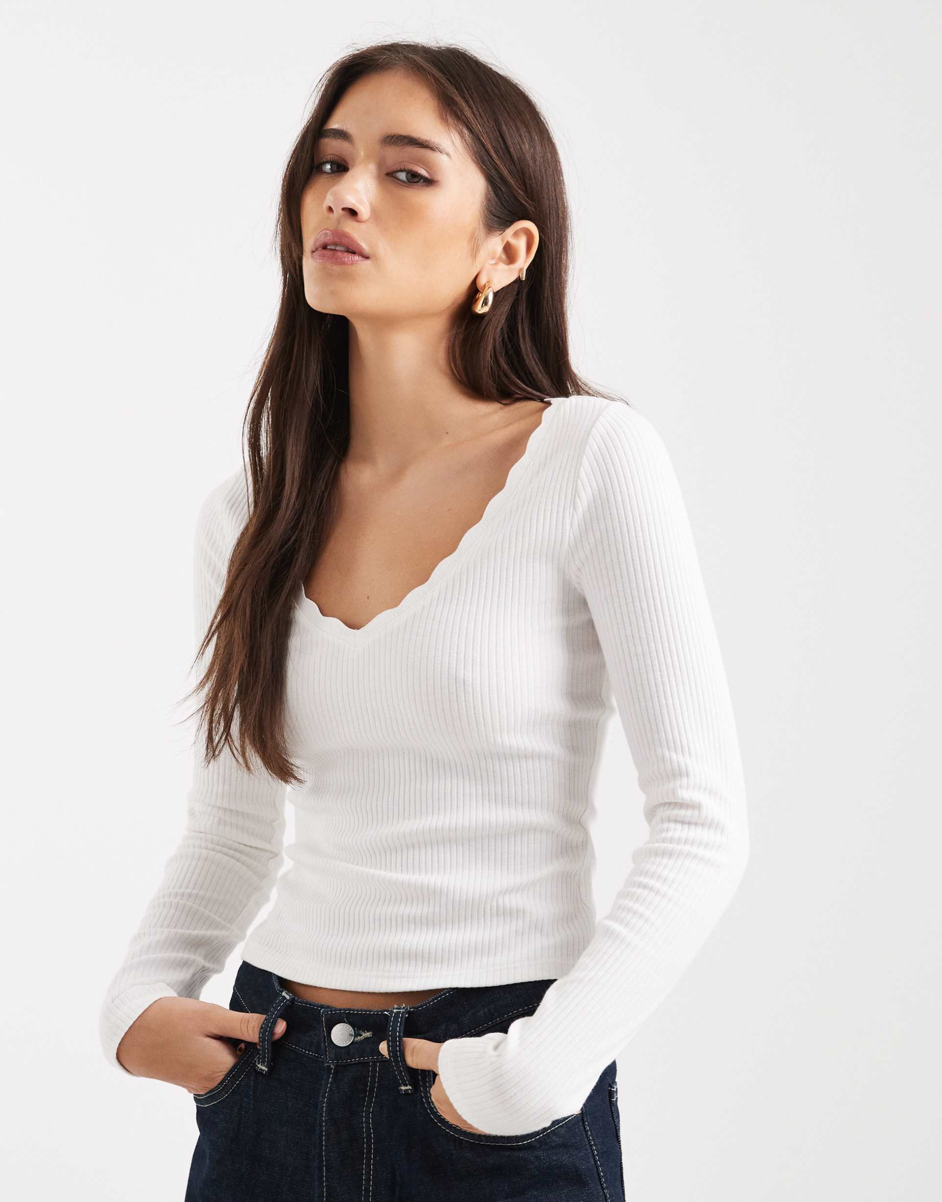 Long Sleeve Scallop Top