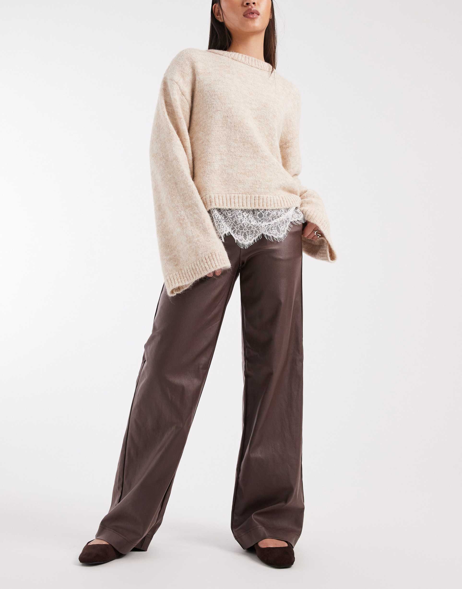 Minimalist Brown Leather Look Coat