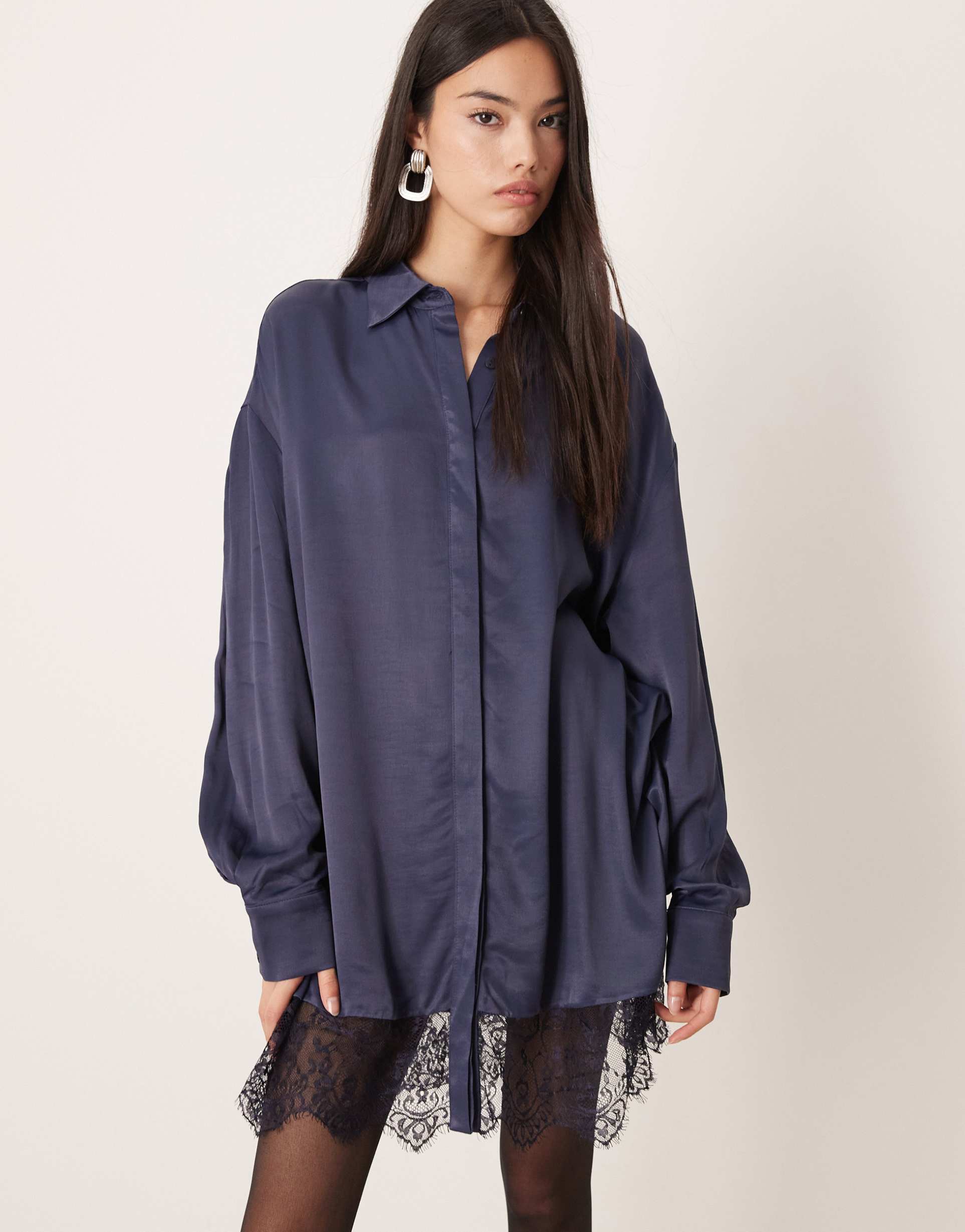 Navy Satin Shirt
